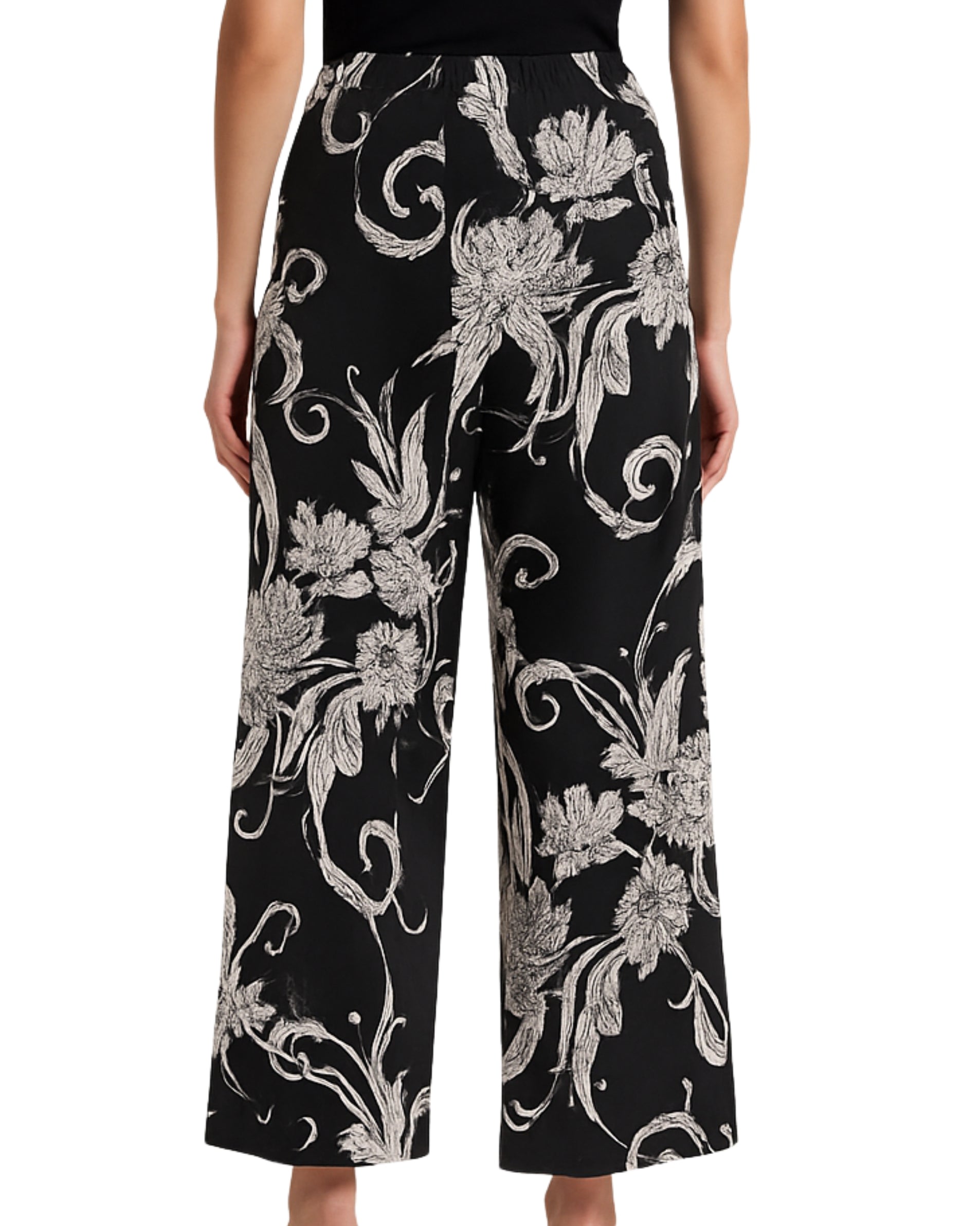 Women, Elastic Waistband, Relaxed Fit, Wide Leg, A Black Base Adorned with Scattered White Polka Dots, Giving a Playful and Modern Look, 95% Polyester, 5% Spandex