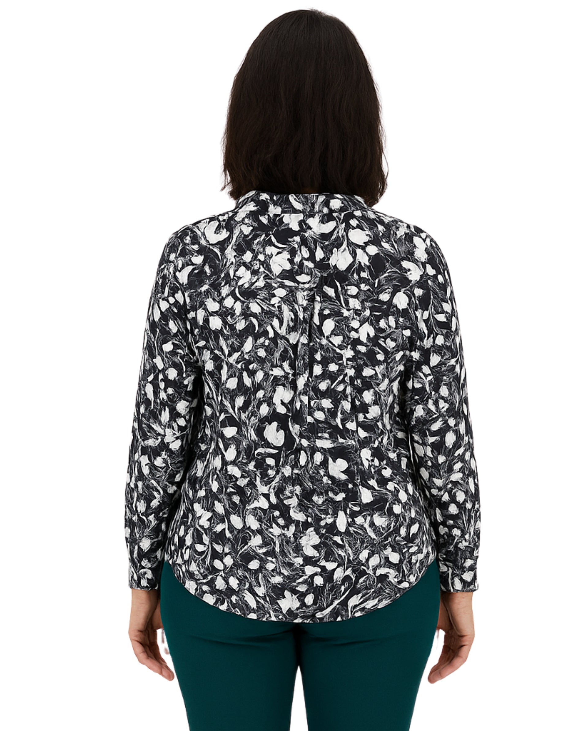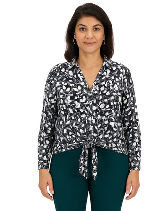 Women, Long Sleeve, V Neck, Pull On, Abstract Floral, Front Tie Knot at the Hem, aModern, Casual Flair, 100% Polyester