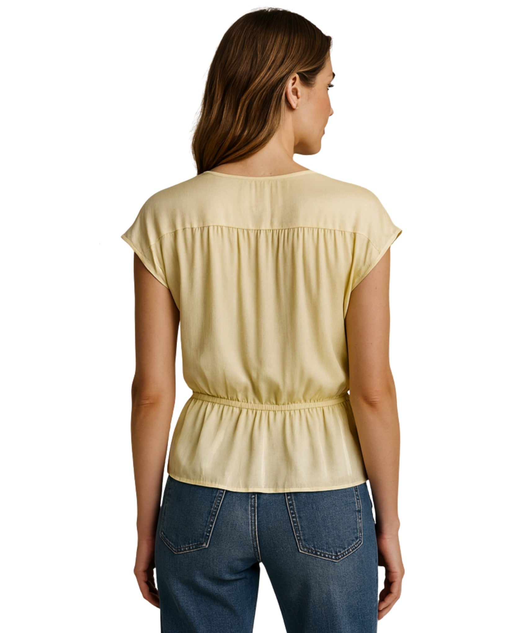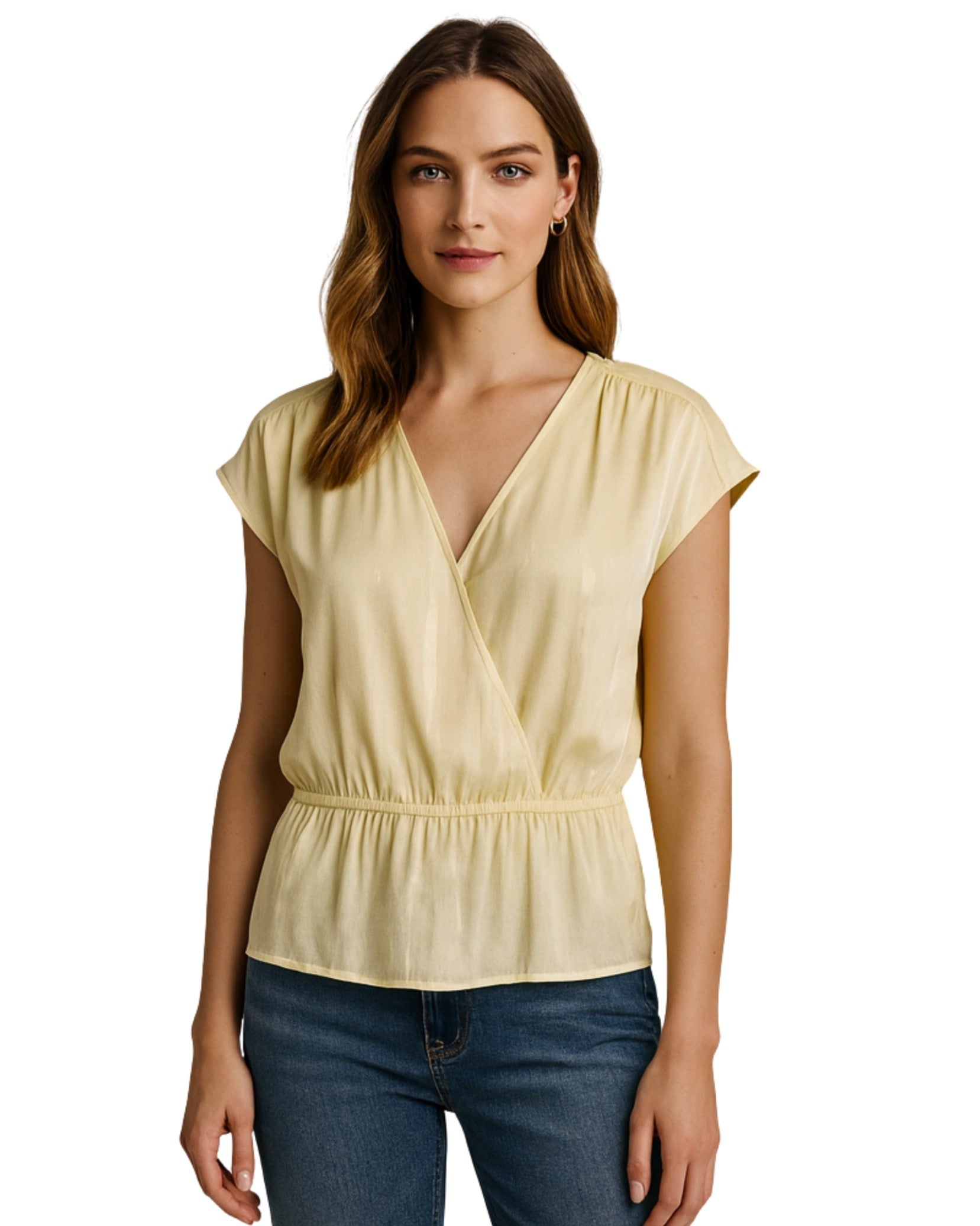 Women, Short Sleeve, V Deep Neck, Satin, Light, Breathable, and Beautifully Detailed, 78% Rayon, 22% Polyester