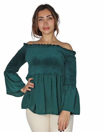 Women, Long Sleeve, Off Shoulder, Ruffle, Fit, Casual, 100% Polyester