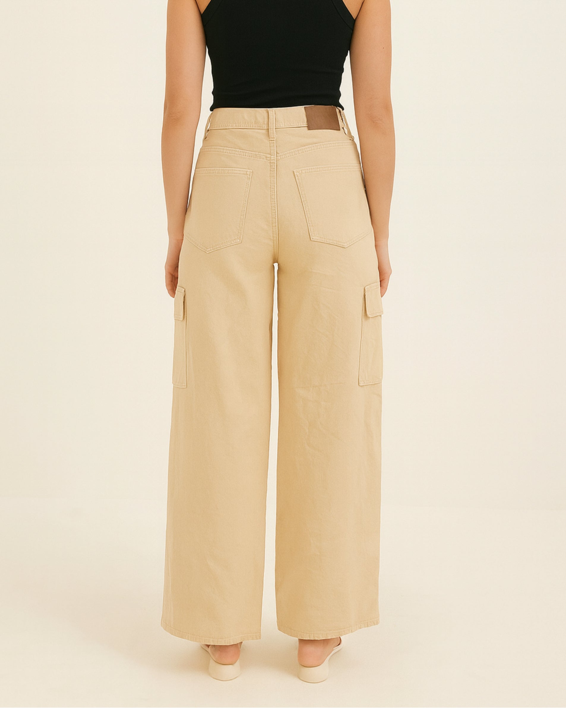 Women, Casual, Comfortable, Button Closure, Zipper Closure, 4 Pockets, 2 Side Pockets, Wide Leg