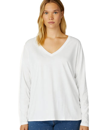 Women, T-Shirt, Long Sleeve, V-Neck, Comfort, Standard, 100% Cotton