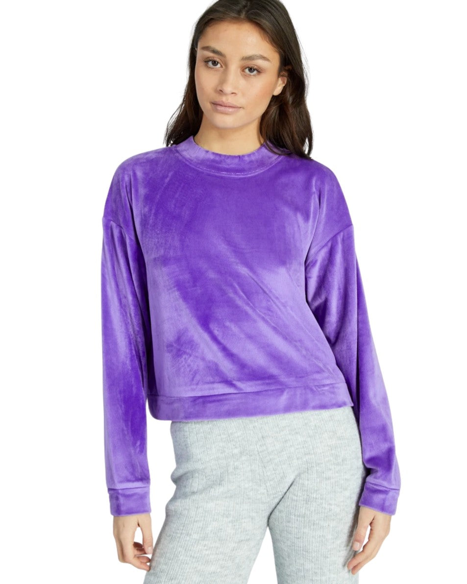 Women, Long Sleeve, Crew Neck, Soft Velour, Smooth, Relaxed Fit for All Day Comfort, Casual, 94% Polyester, 6% Elastane