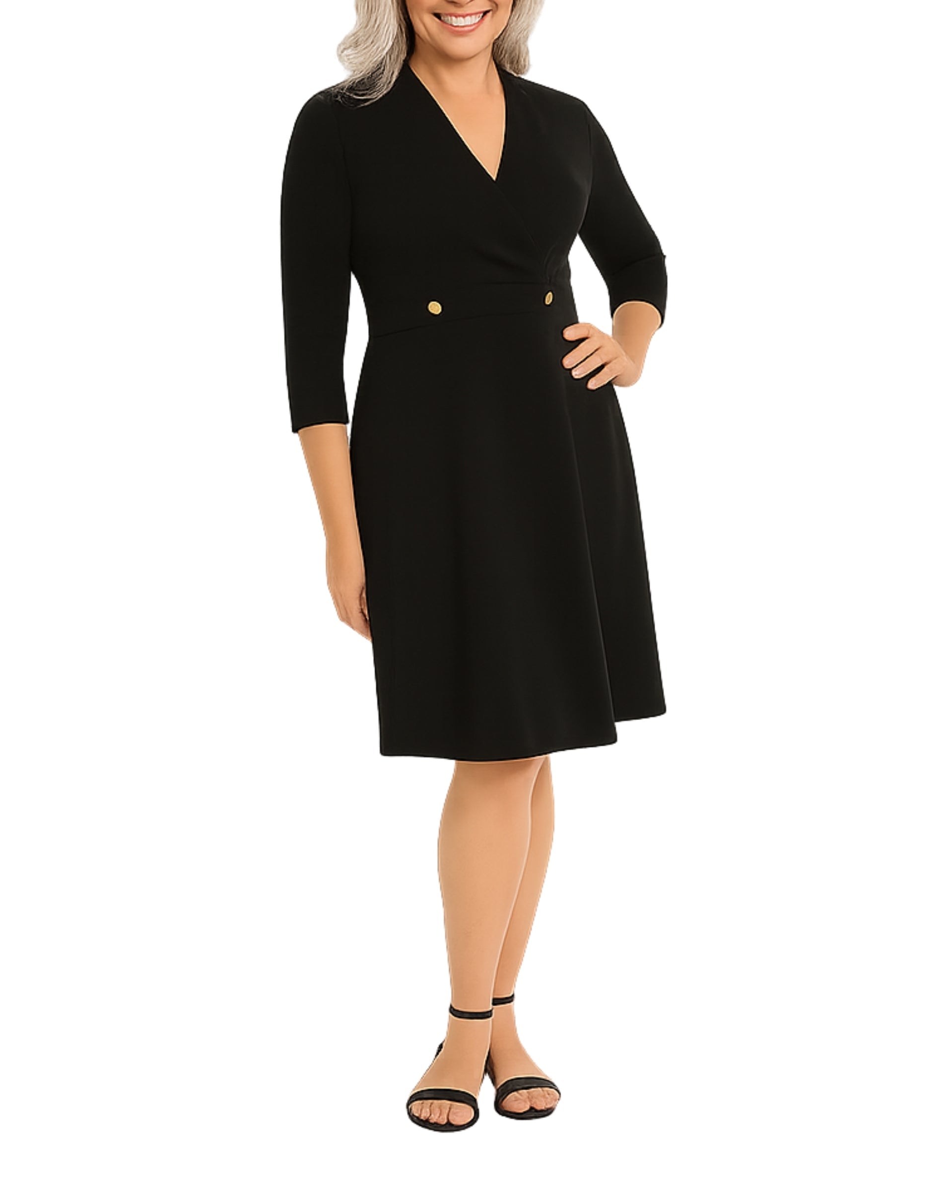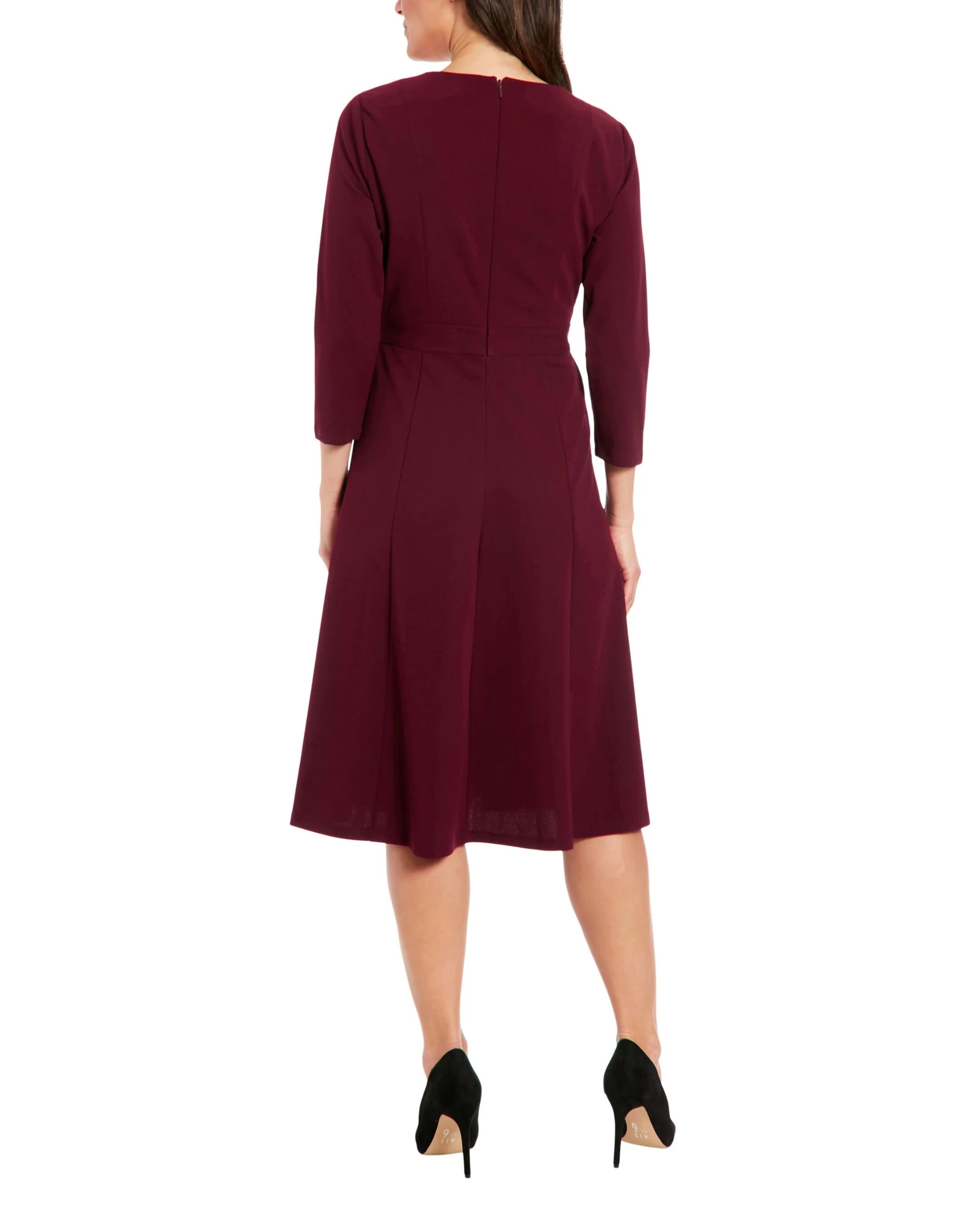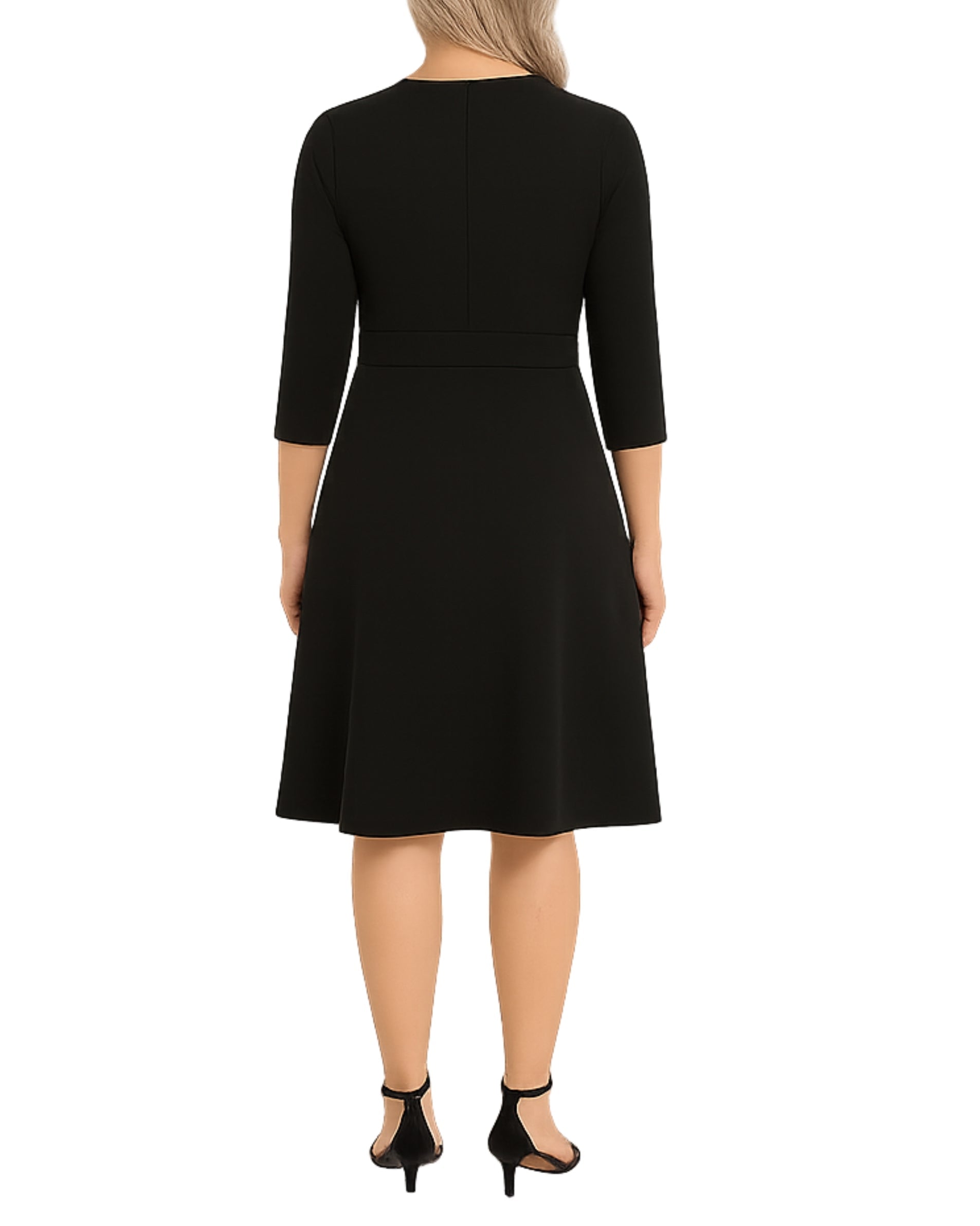 Women, 3/4 Sleeve, Crew Neck, Back Zipper, Fit & Flare, Seamed Side Tab, Provides Modest Coverage, Making it Perfect for Professional and Semi Formal Settings, 100% Polyester