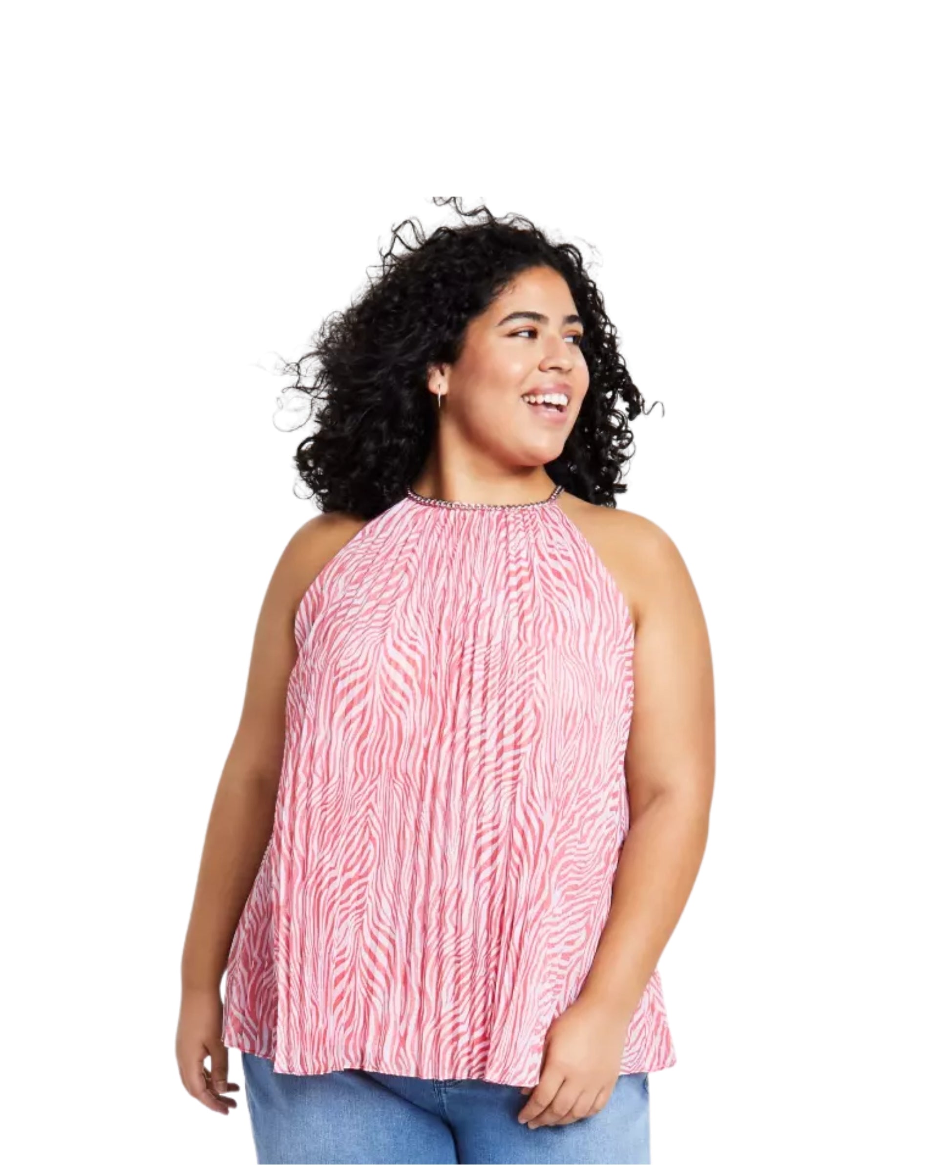 Women, Sleevelss, Crew Neck, Zebra Pleated Chain Top, Back Buckle, Relaxed, Stylish