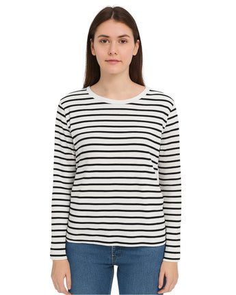 Women, Long Sleeve, Round Neck, Stripe, Relax, Comfort, Basic & Casual, 100% Cotton