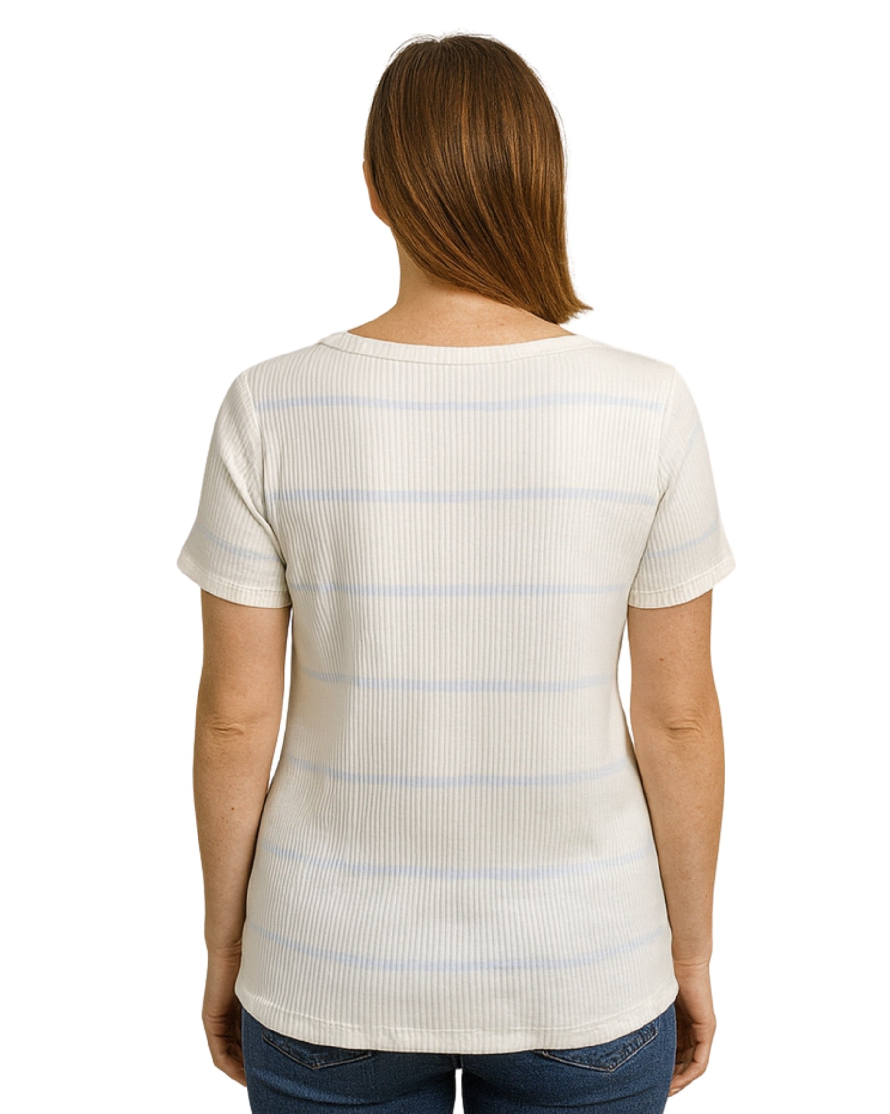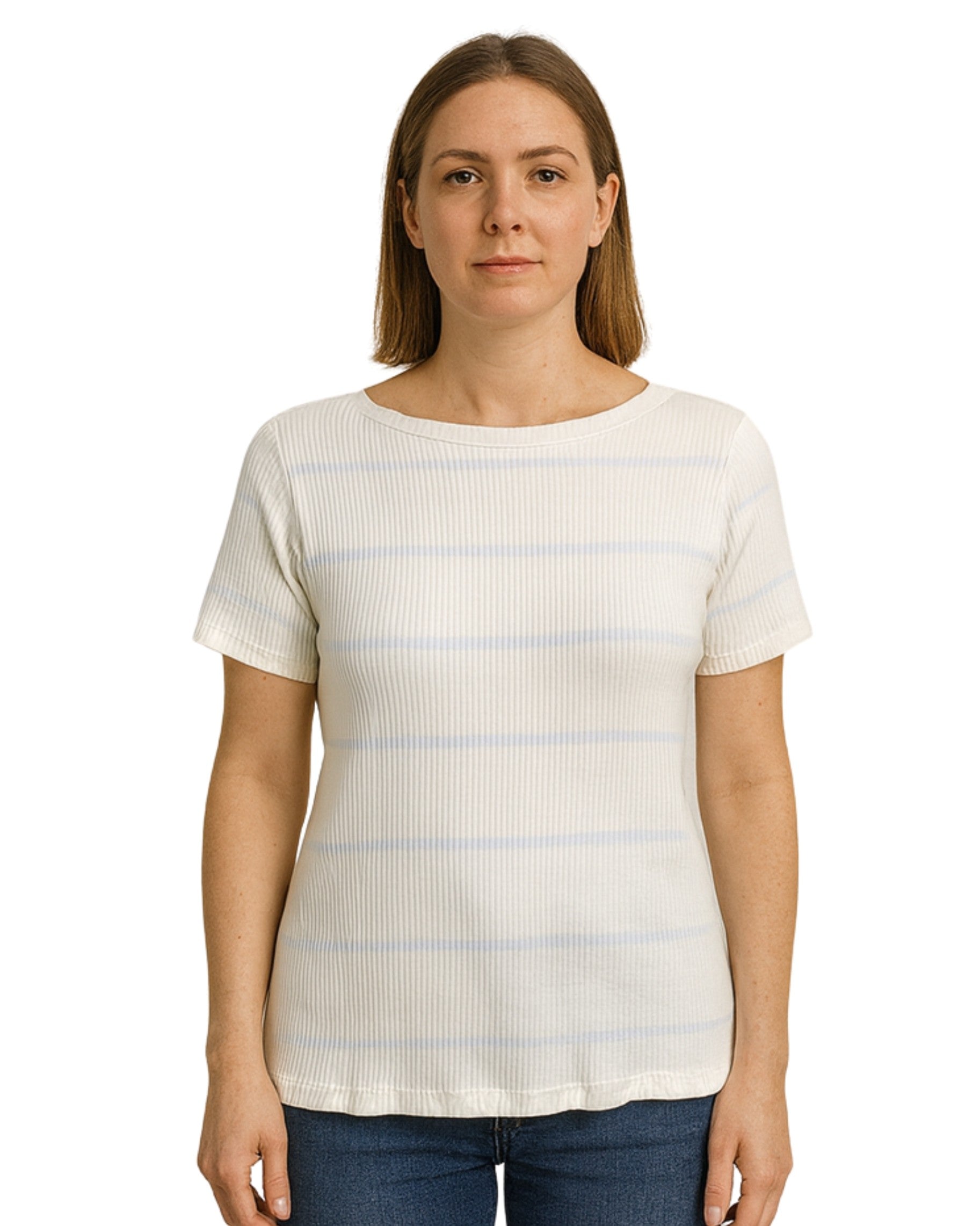 Women, Short Sleeve, Round Neck, Rib, Stripe, Bodyfit, Relax & Comfort, Casual, 98% Cotton, 2% Elastane