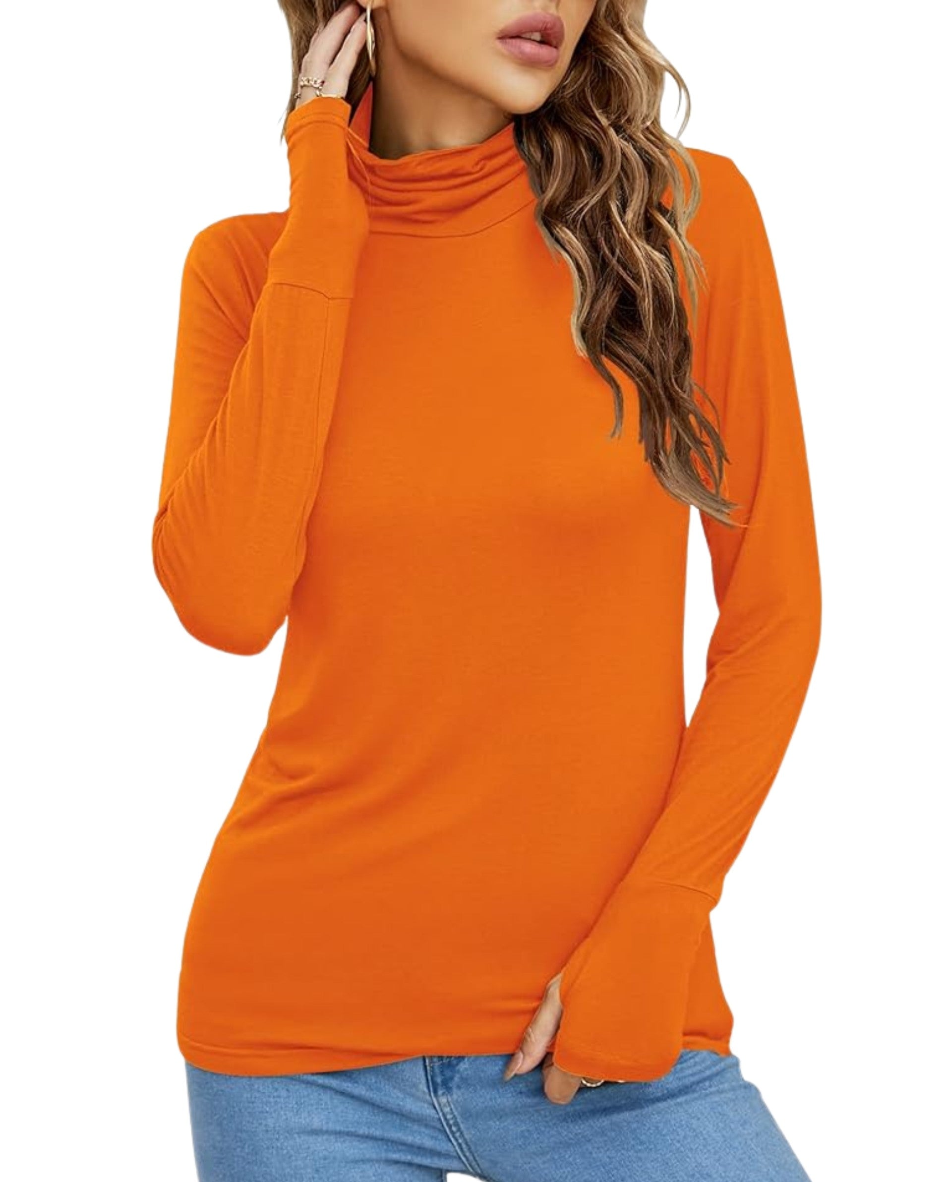 Women, Casual, Soft, Smooth, Turtle Neck, Long Sleeve, Comfortable