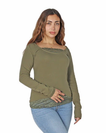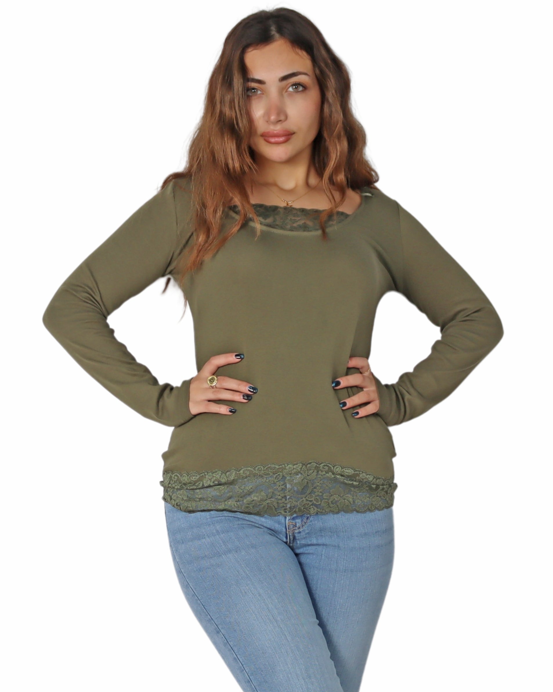 Women, Long Sleeve, Square Neck, Embroided, Soft, Casual, 97% Cotton, 3% Elastane