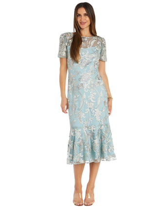 R & M RICHARDS Women Embroidered Tea-Length Flounce Dress