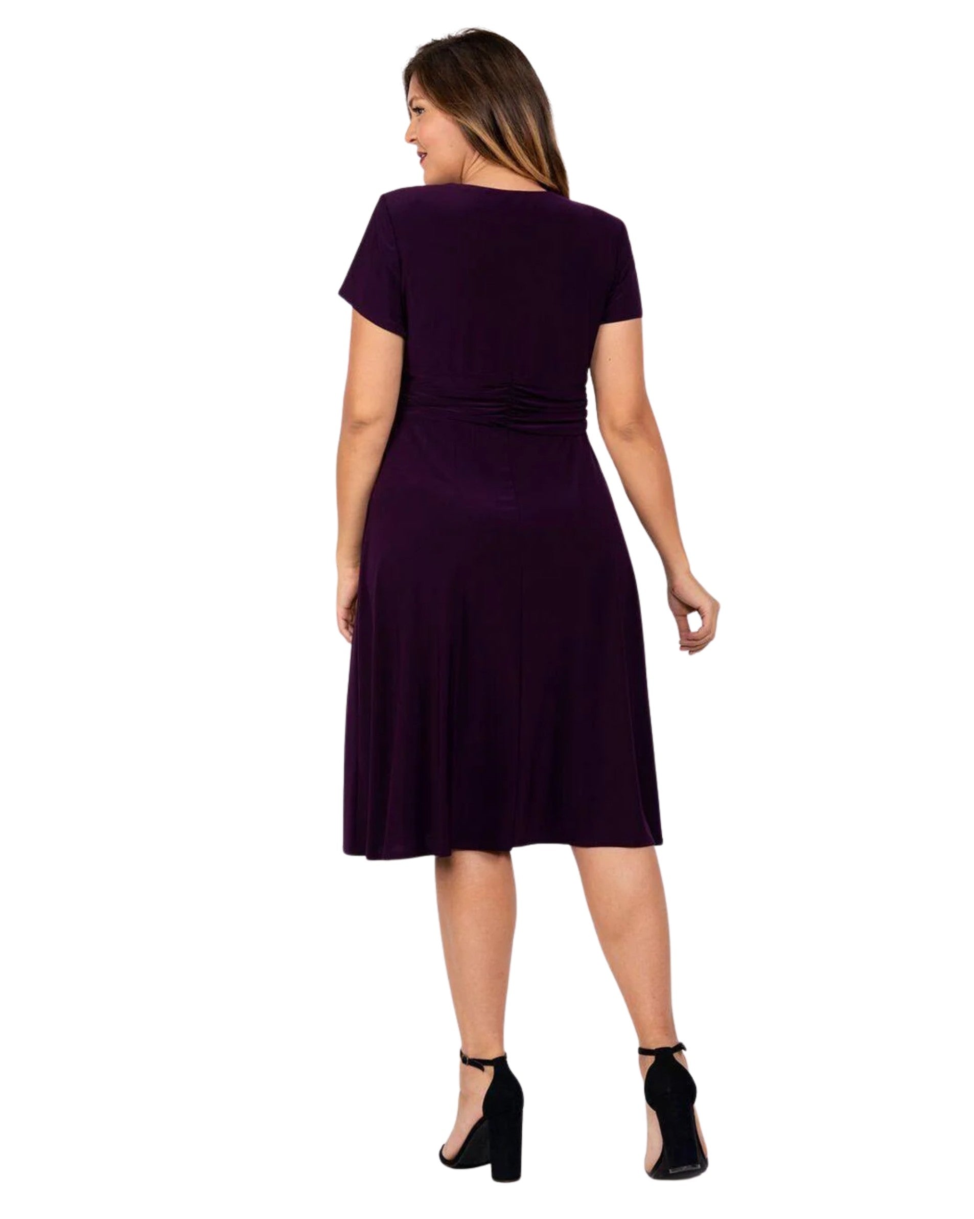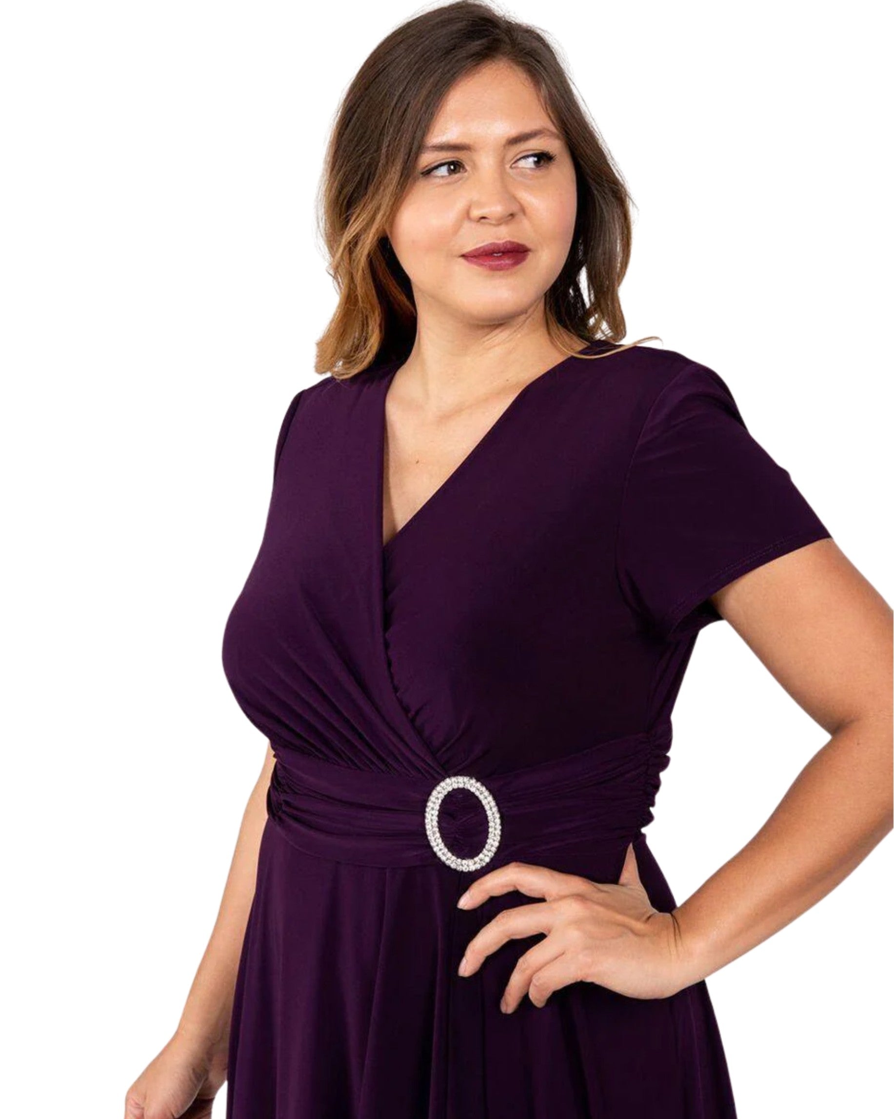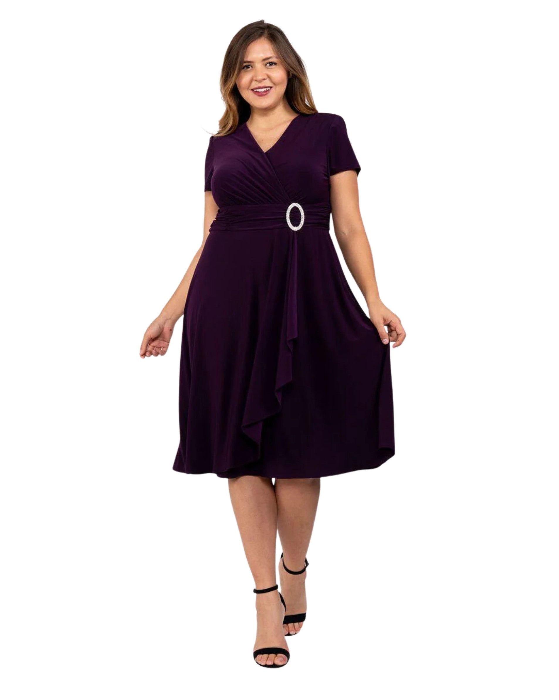 Women, Pull On, Short Sleeve, V Neck, Stretch, Decorative Side Ring for Added Elegance, Soft, Stretchy Cascading Overlay, 95% Polyester, 5% Spandex