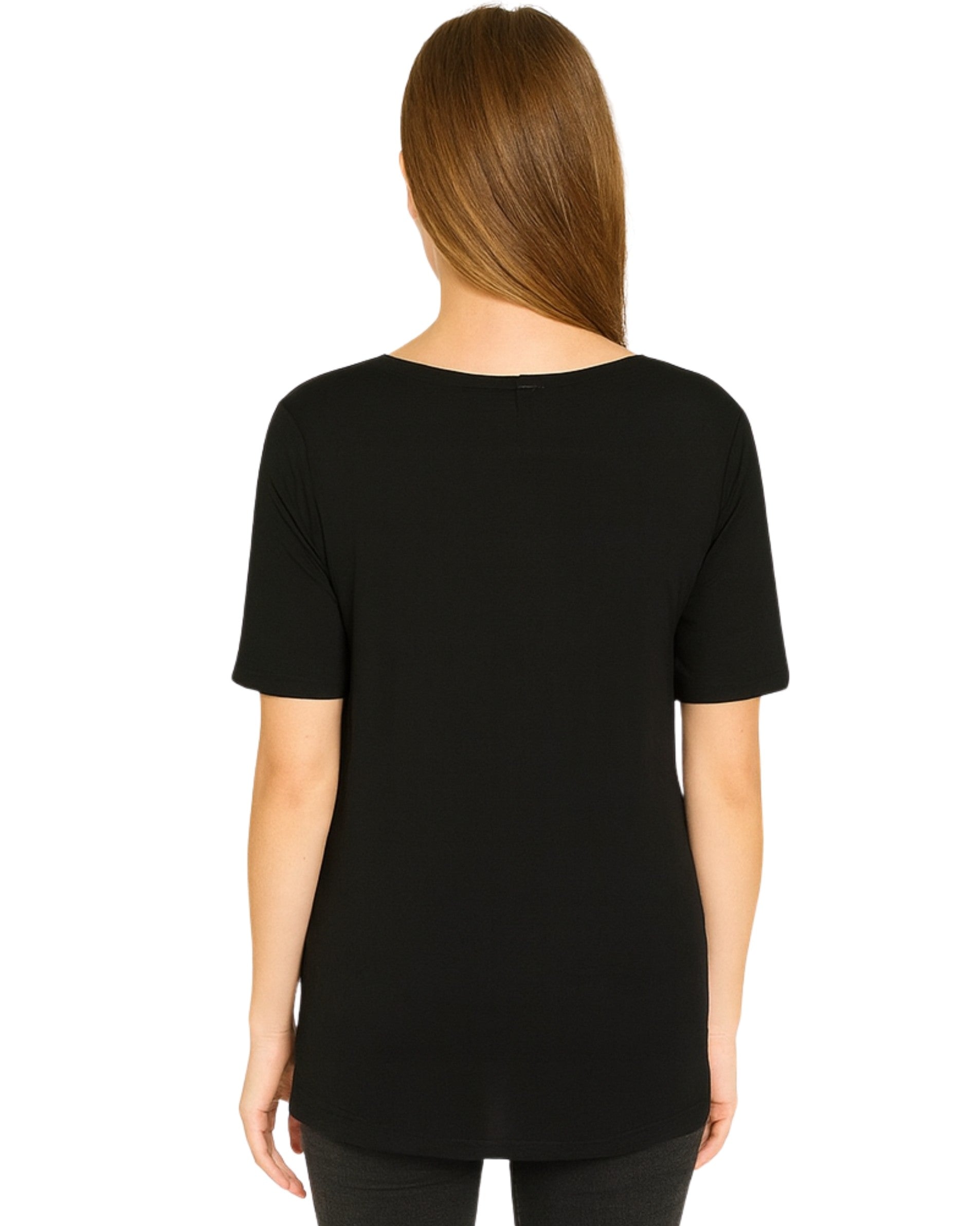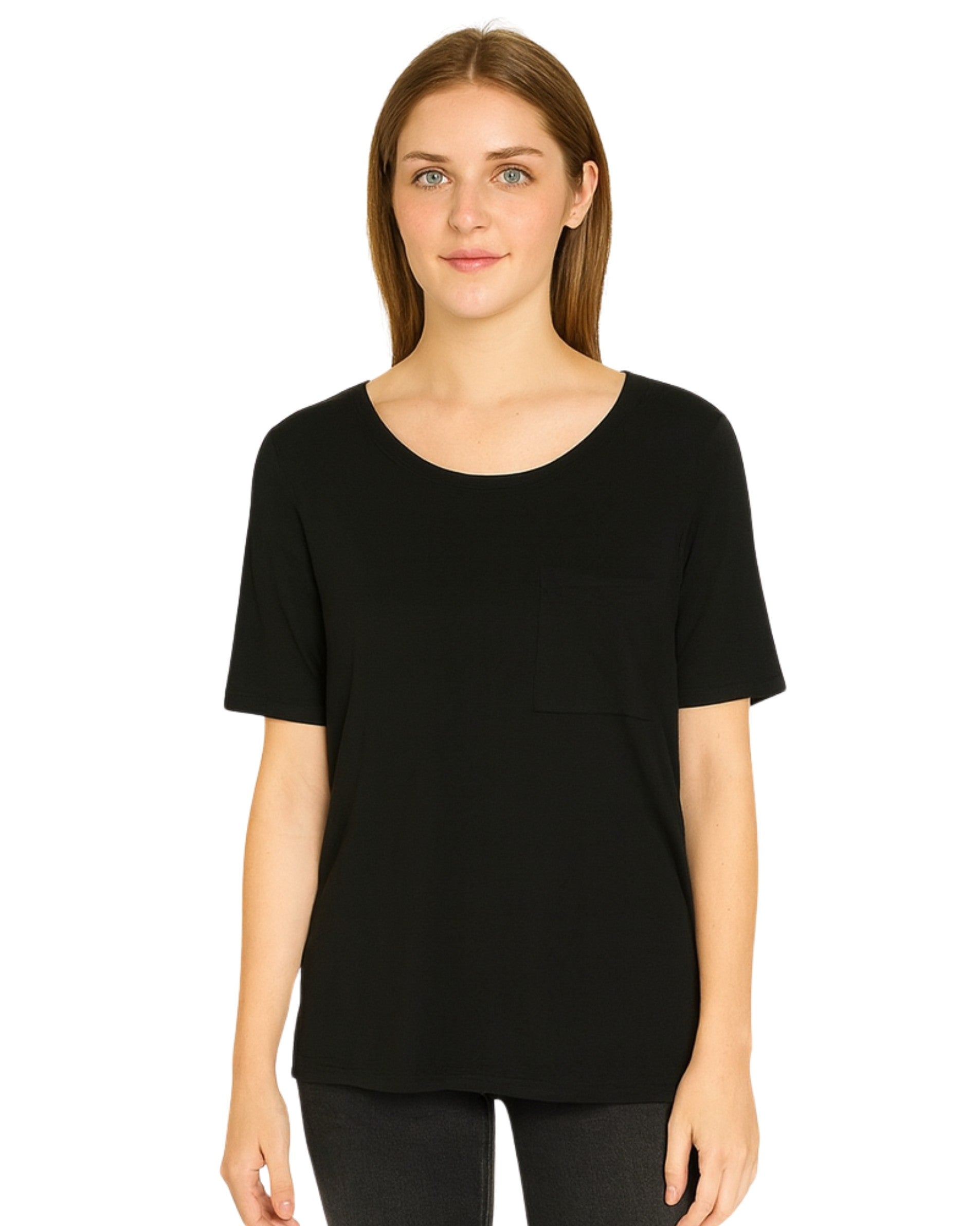 Women, Short Sleeve, Round Neck, Chest Pocket, Side Zipper Closure, Back Chiffon, Relaxed, Casual