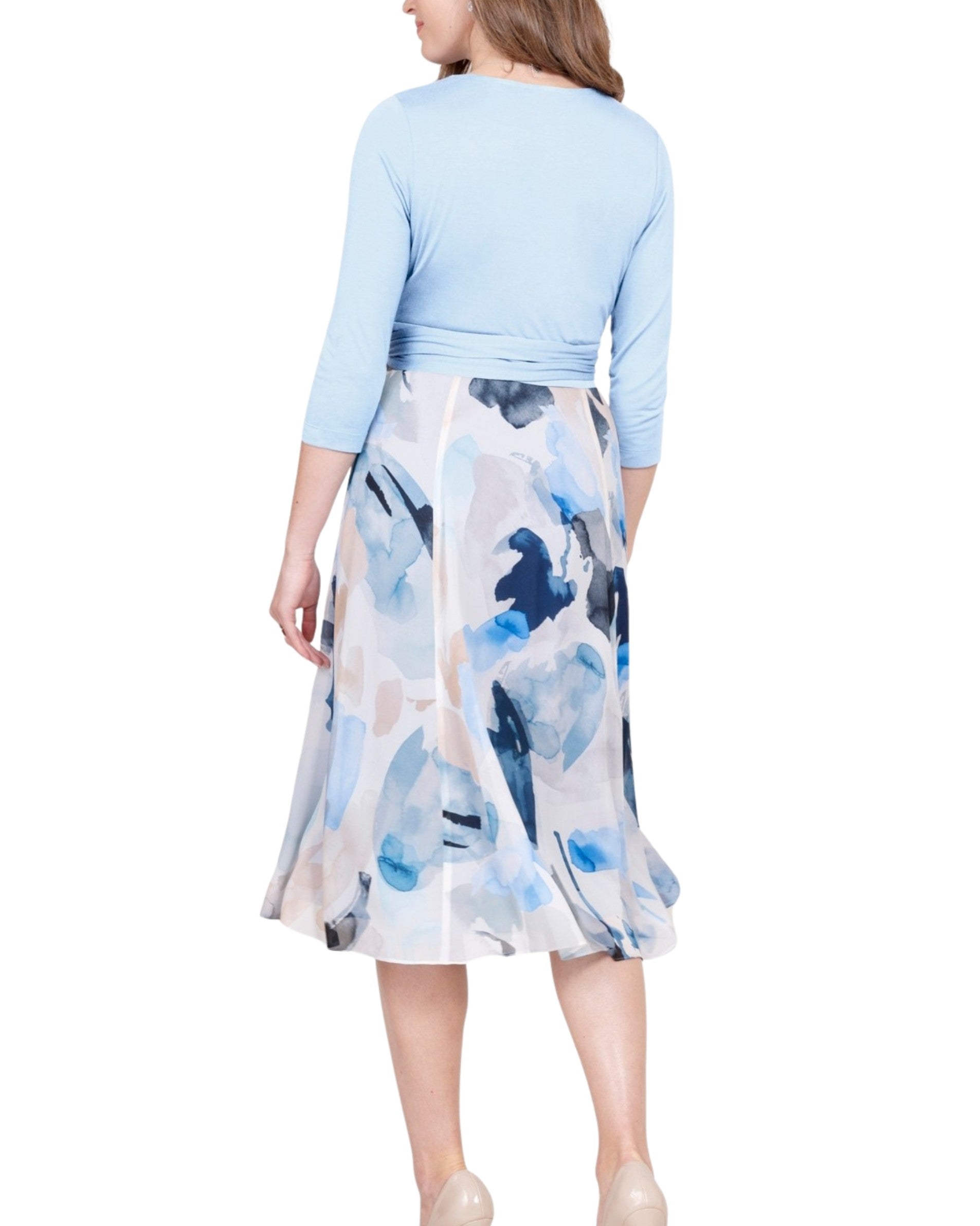 Women, Casual, Design, Graphic, 3/4 Sleeve, V Neck, Flare Comfort Skirt, Side Tie Detail, Fabric