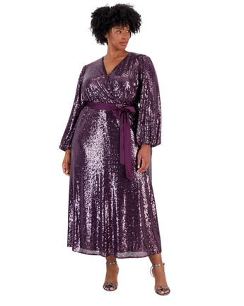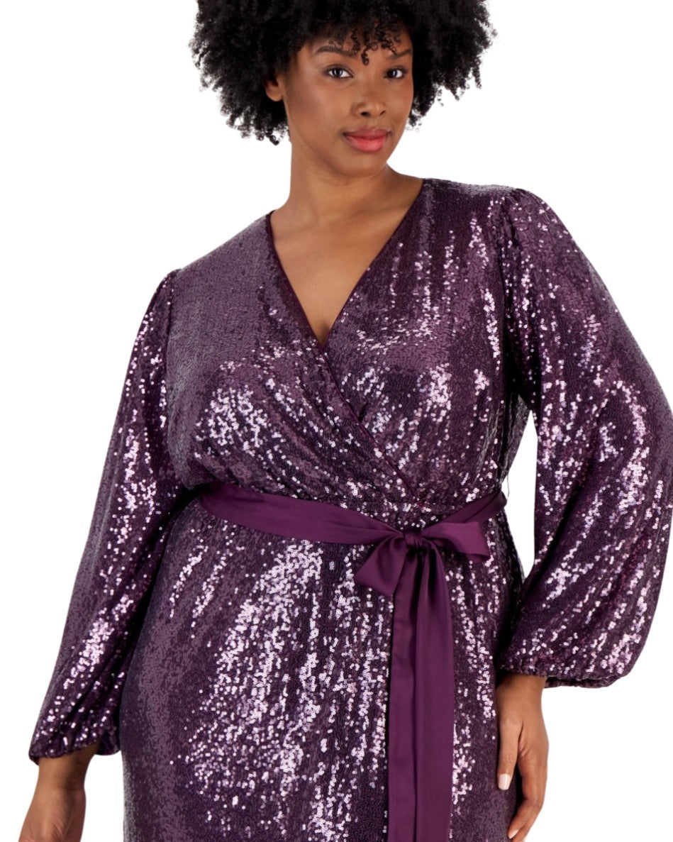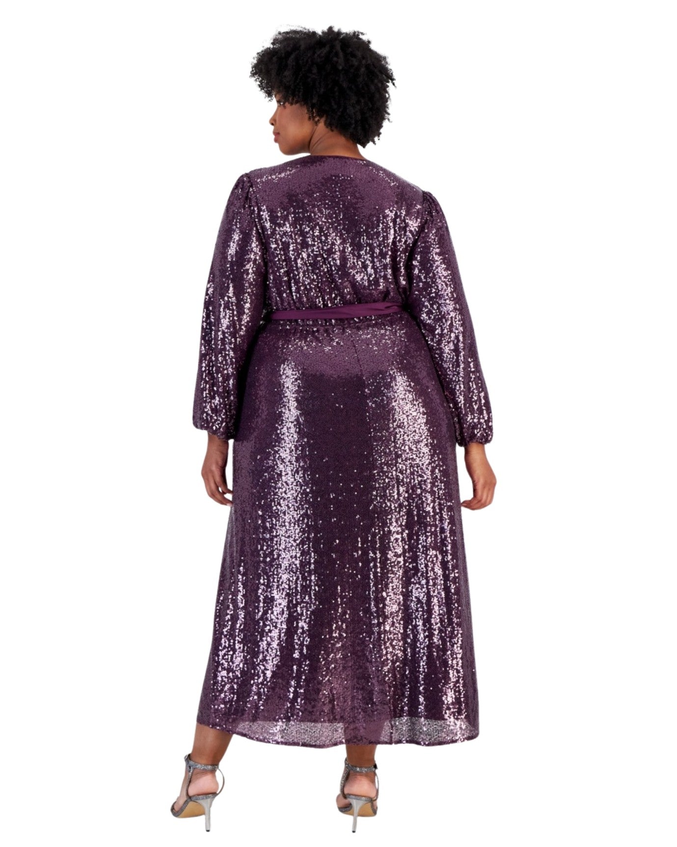 Women, Pull On, Long Sleeve, V Neck, Satin Wasited Belt, Sequinned, Stylish & Fashion, 100% Polyester,m