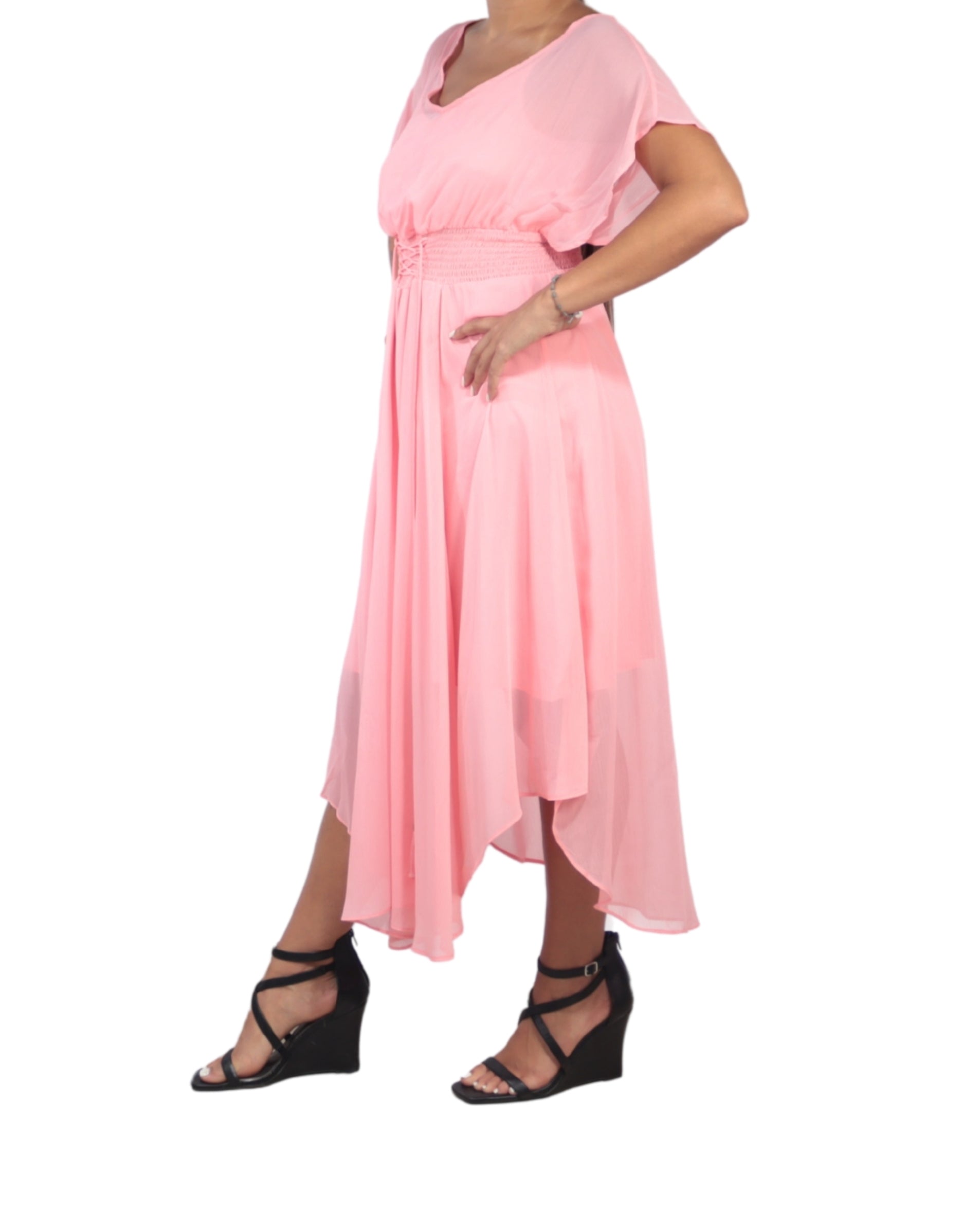 Women, Short Sleeve, V Neck, Stretch Fit, Relaxed, Chiffon, Casual