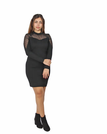 Women, Long Sleeve, Back Zipper Closure, Fit, Tight, Mini Dress, Chiffon, Soft, Chick
