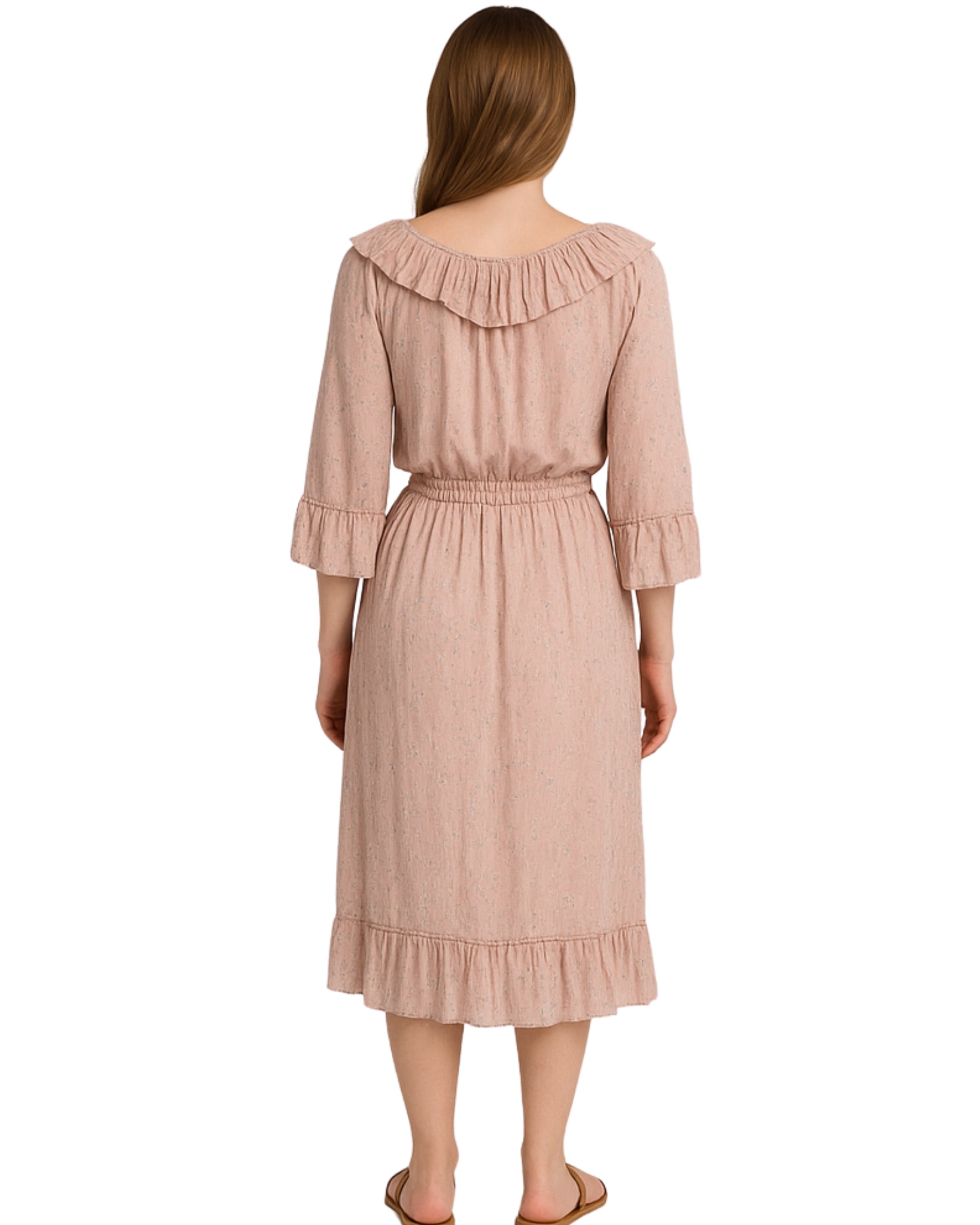 Clothing, Women, Dress, Floral, Stylish, 3/4 Sleeve, V-Neck, Side Tight