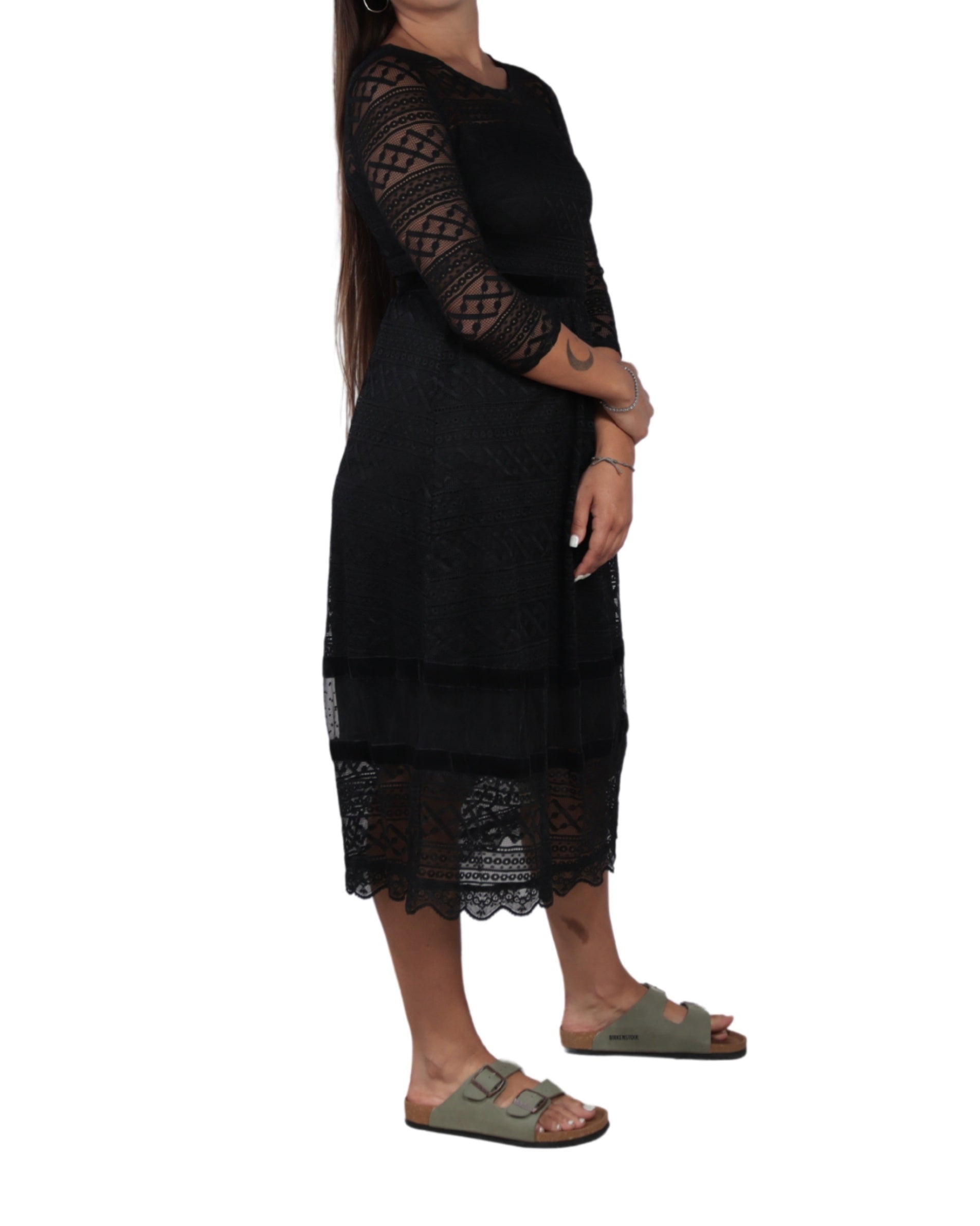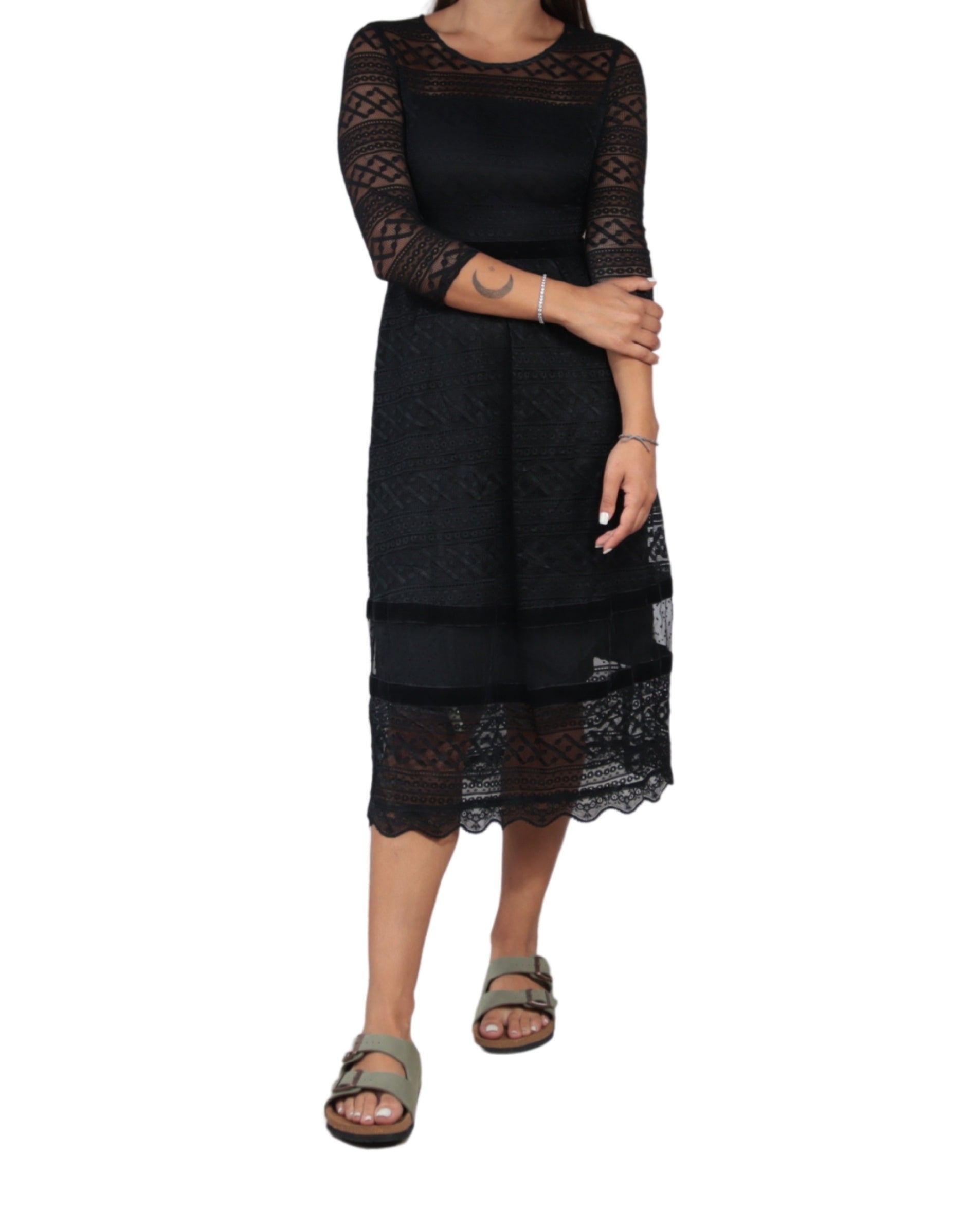 Women, 3/4 Sleeve, Round Neck, Side Zipper, Lace, Emroided, Classy & Chic