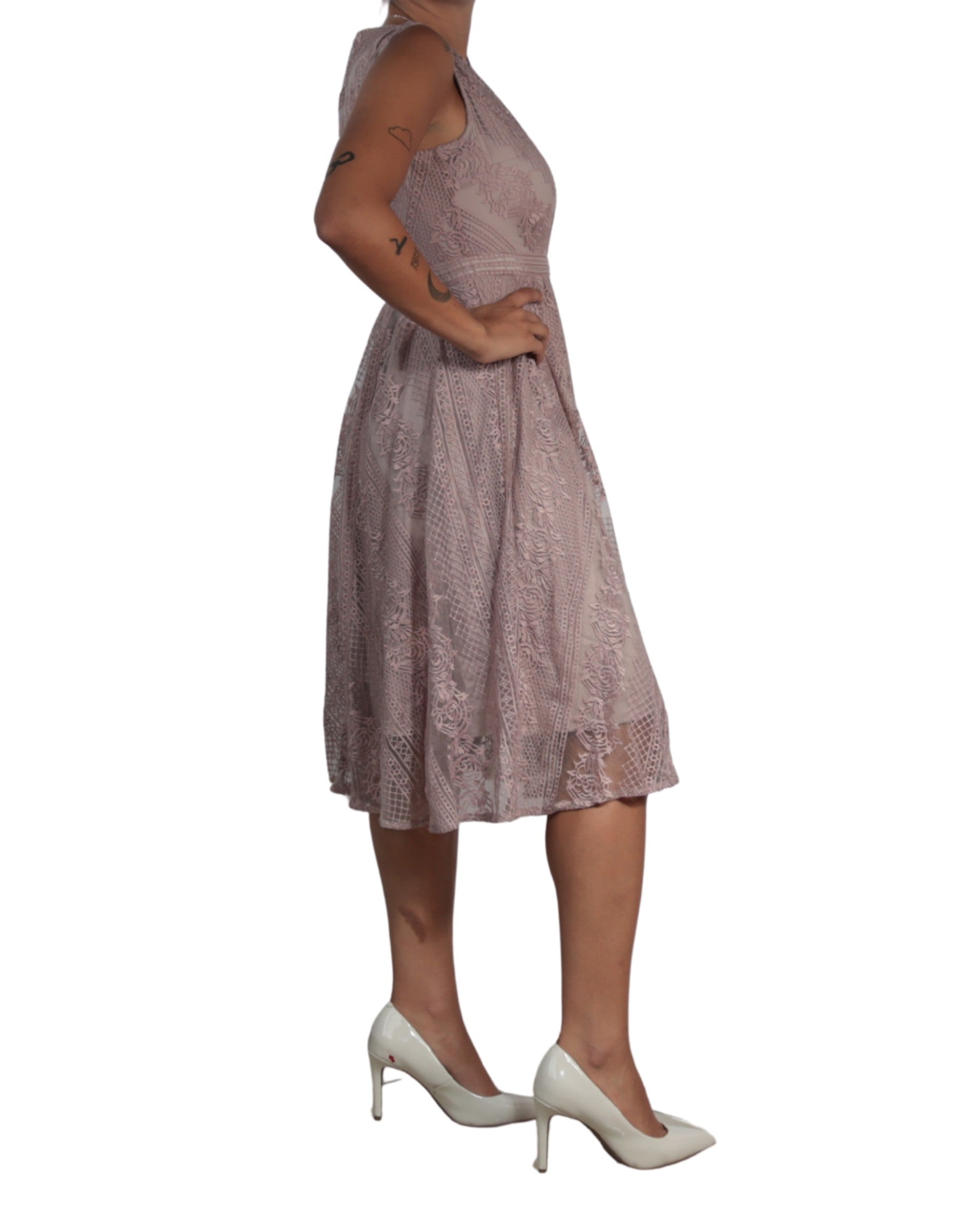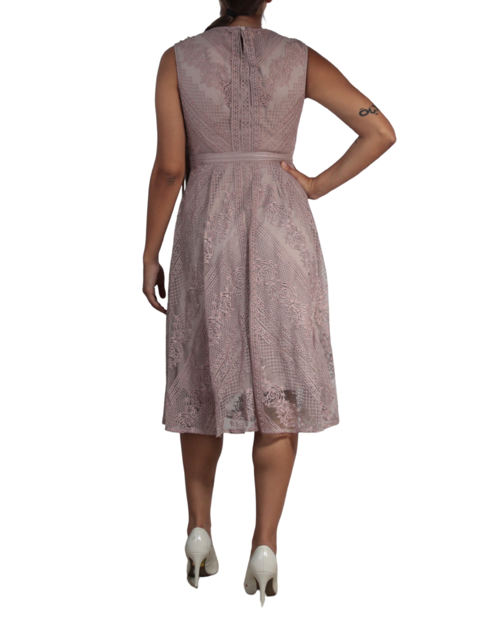 Women, Sleeveless, Round Neck, Fitted Bodice, Intricate All Over Lace Embroidery, Side Sipper, Comfort and Style, 100% Polyester