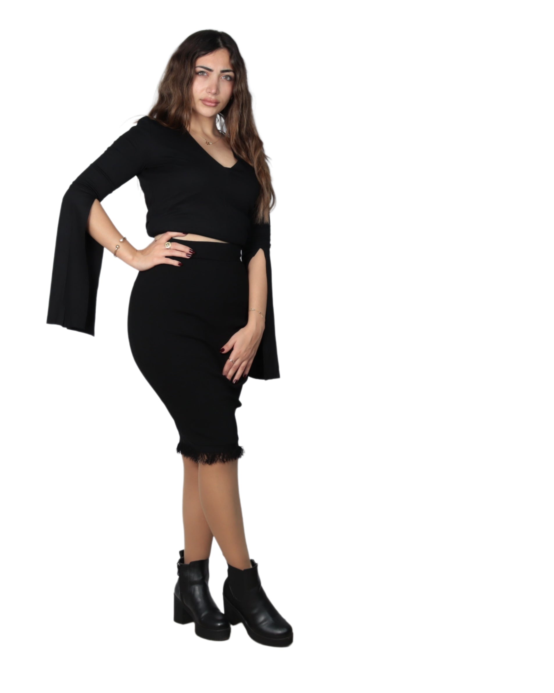 Women, Pull Over, Stretch, Tight Fit, Lace Trim, Mid Skirt, Classy & Chick