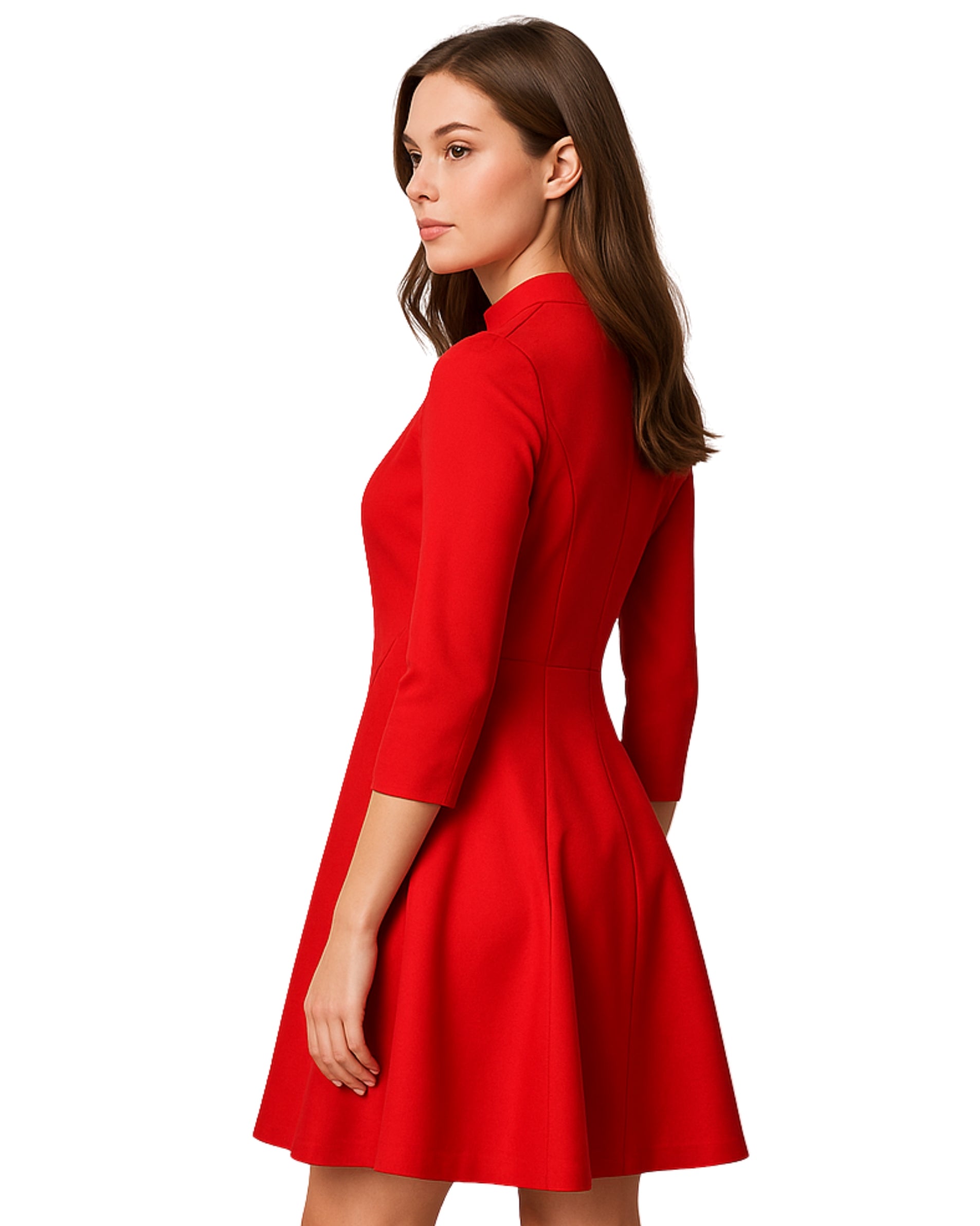 Women, Long Sleeve, Crew Neck, Back Zipper Closure, Ruffle, Chiffon, Calssy Chick, Midi Dress