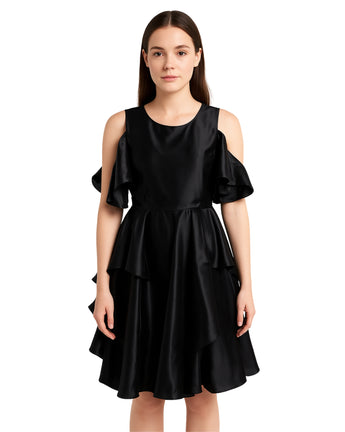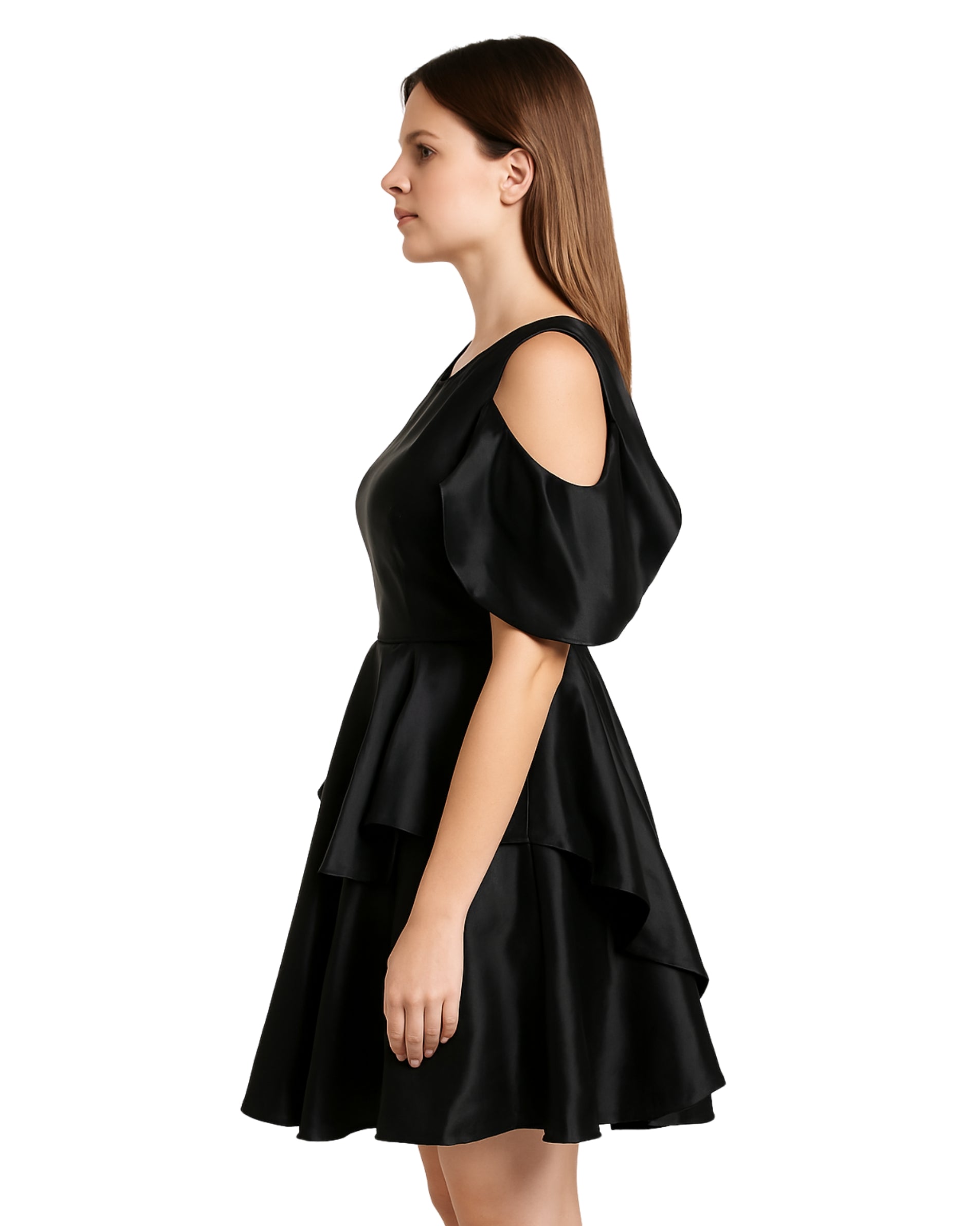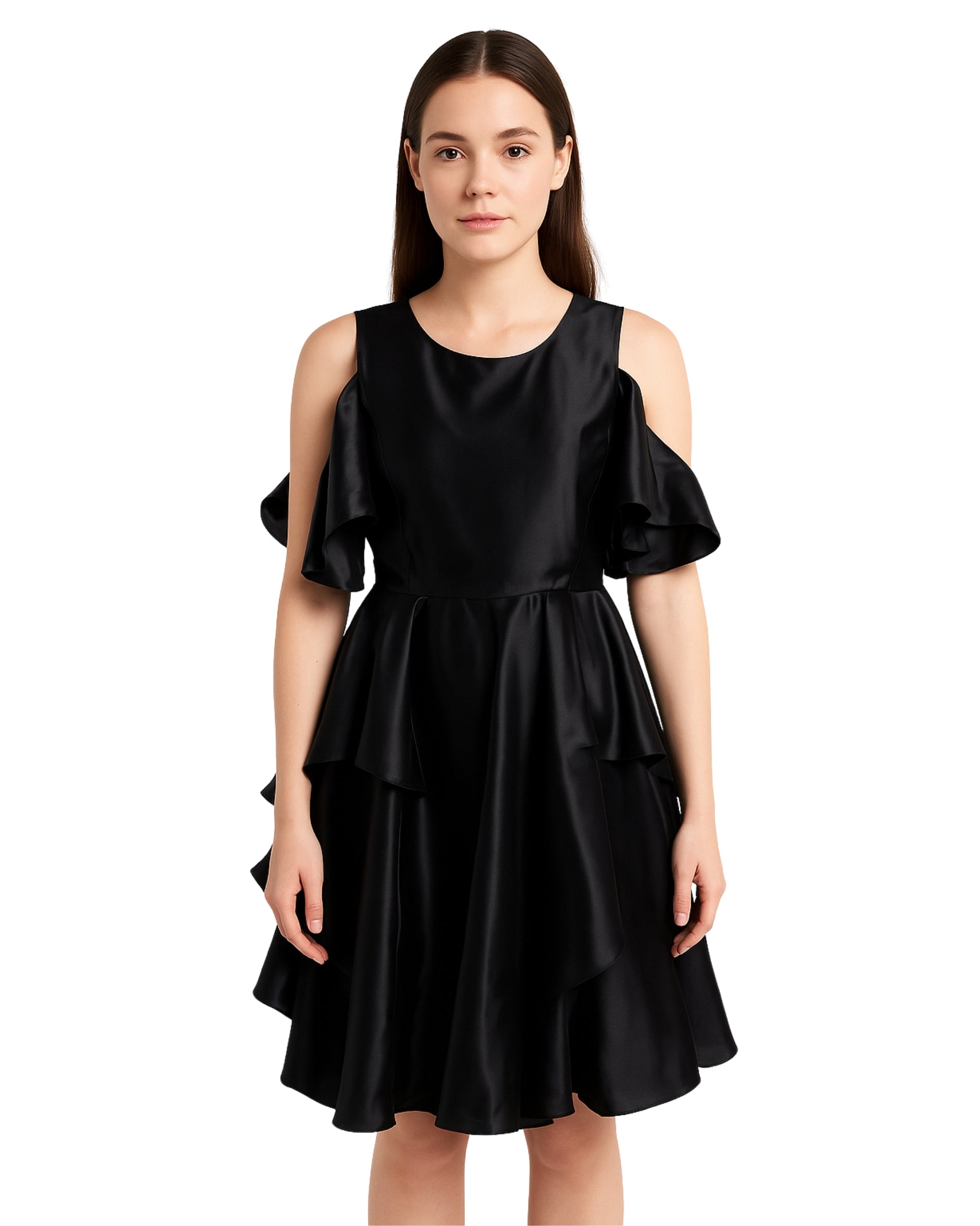 Clothing, Women, Dress, Satin, Stylish, Cut Shoulder, Zipper Closure, Ruffle, Mid Dress