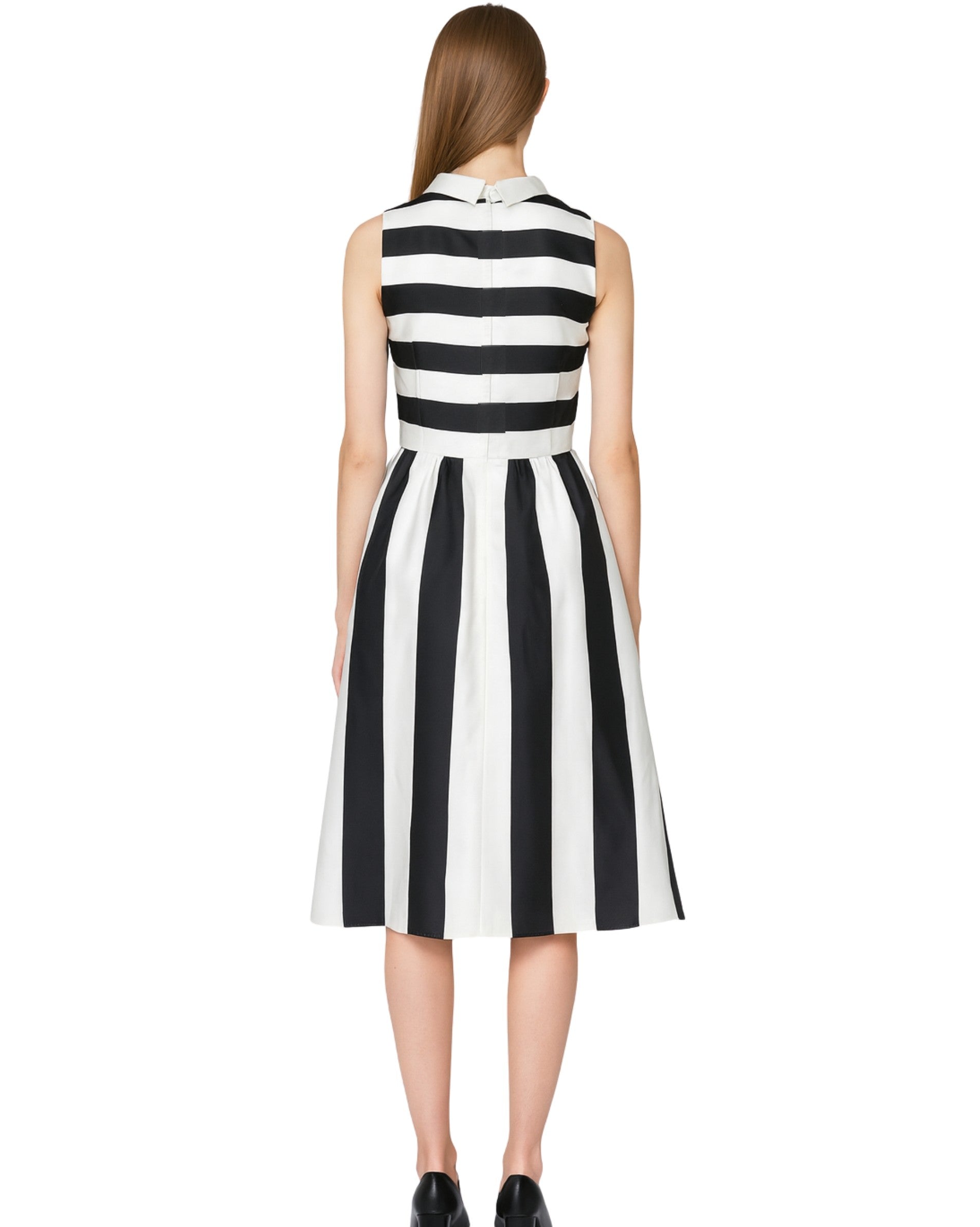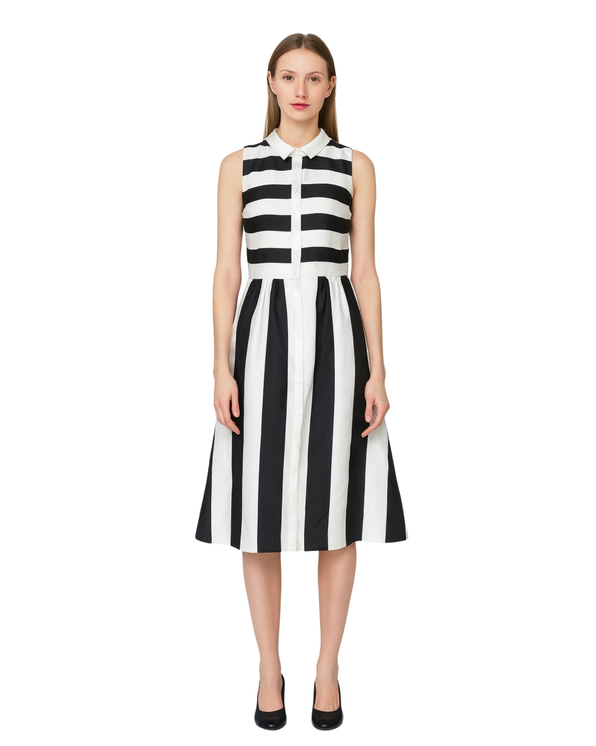 Women, Sleeveless, Collar Neck, Snap Button, Stripe, Ruffle, Satin, Comfort, Casual