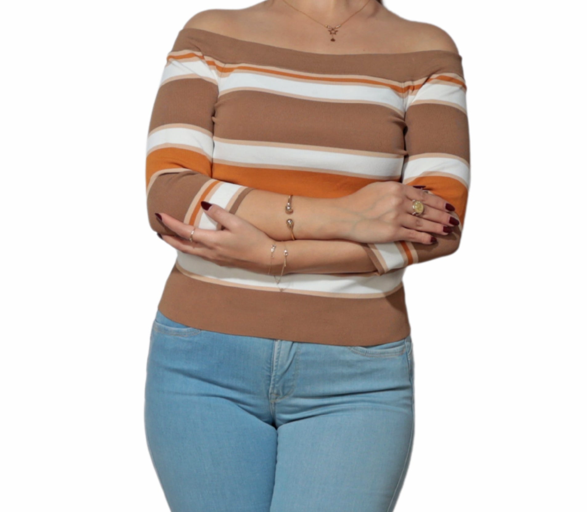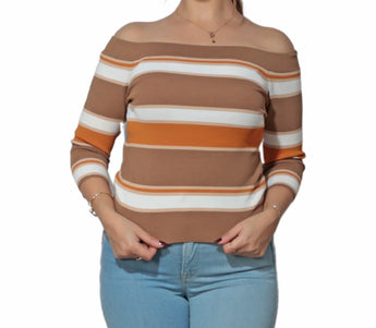 Women, 3/4 Sleeve, Off Shoulder, Boat Neck, Stripe, Soft, Fit, Casual
