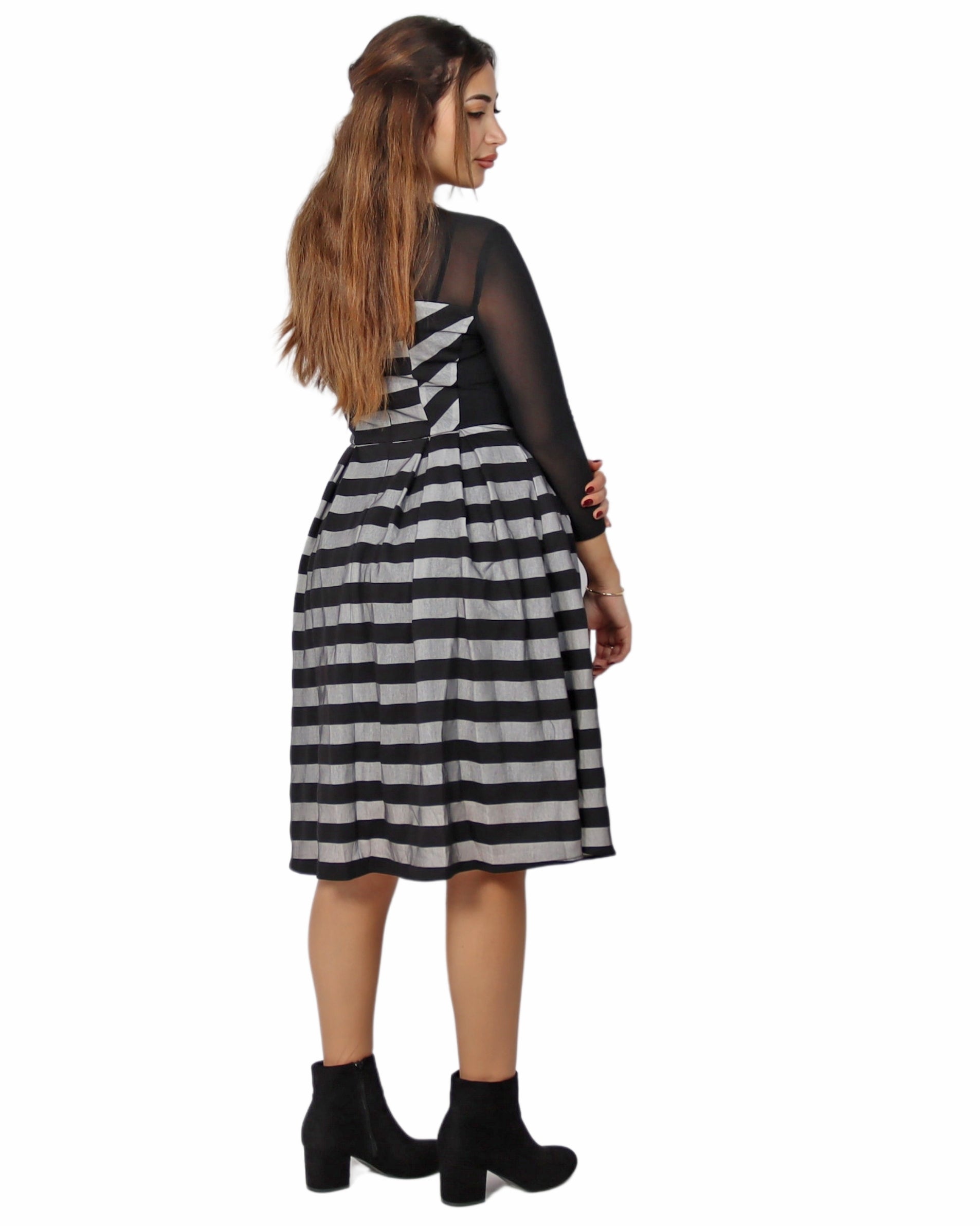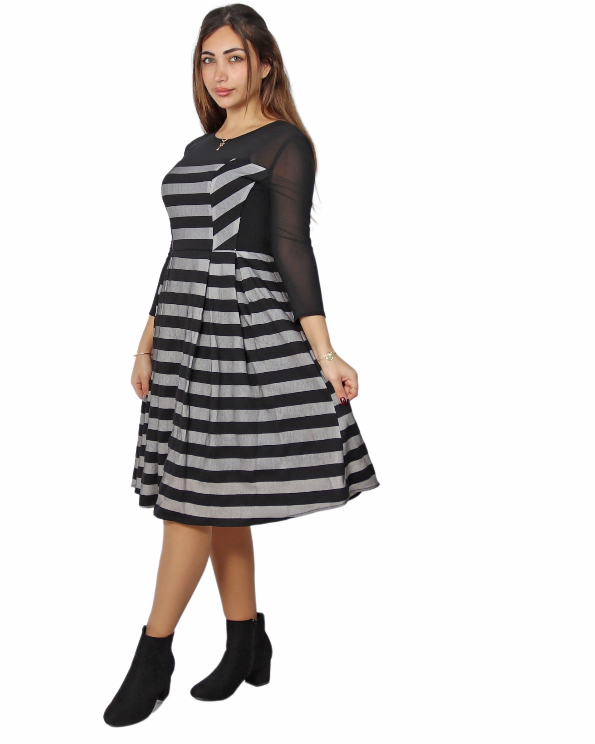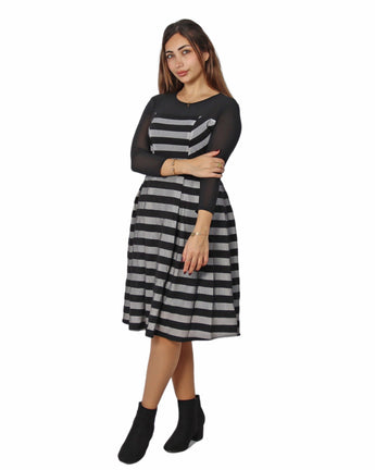 Women, Long Sleeve, Round Neck, back Zipper Closure, Stripe, Soft