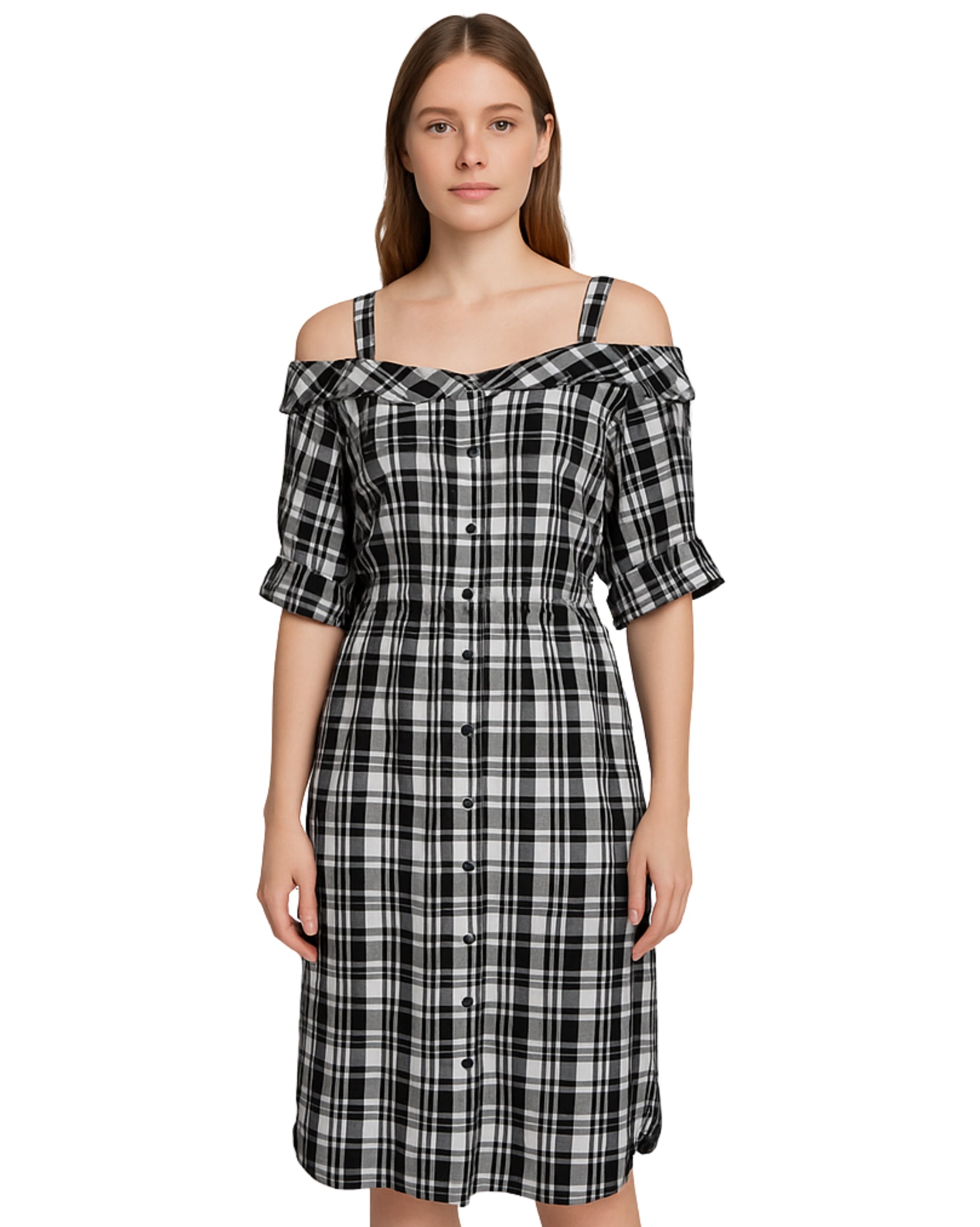 Clothing, Women, Dress, Stylish, 3/4 Sleeve, Button, Daily Dress