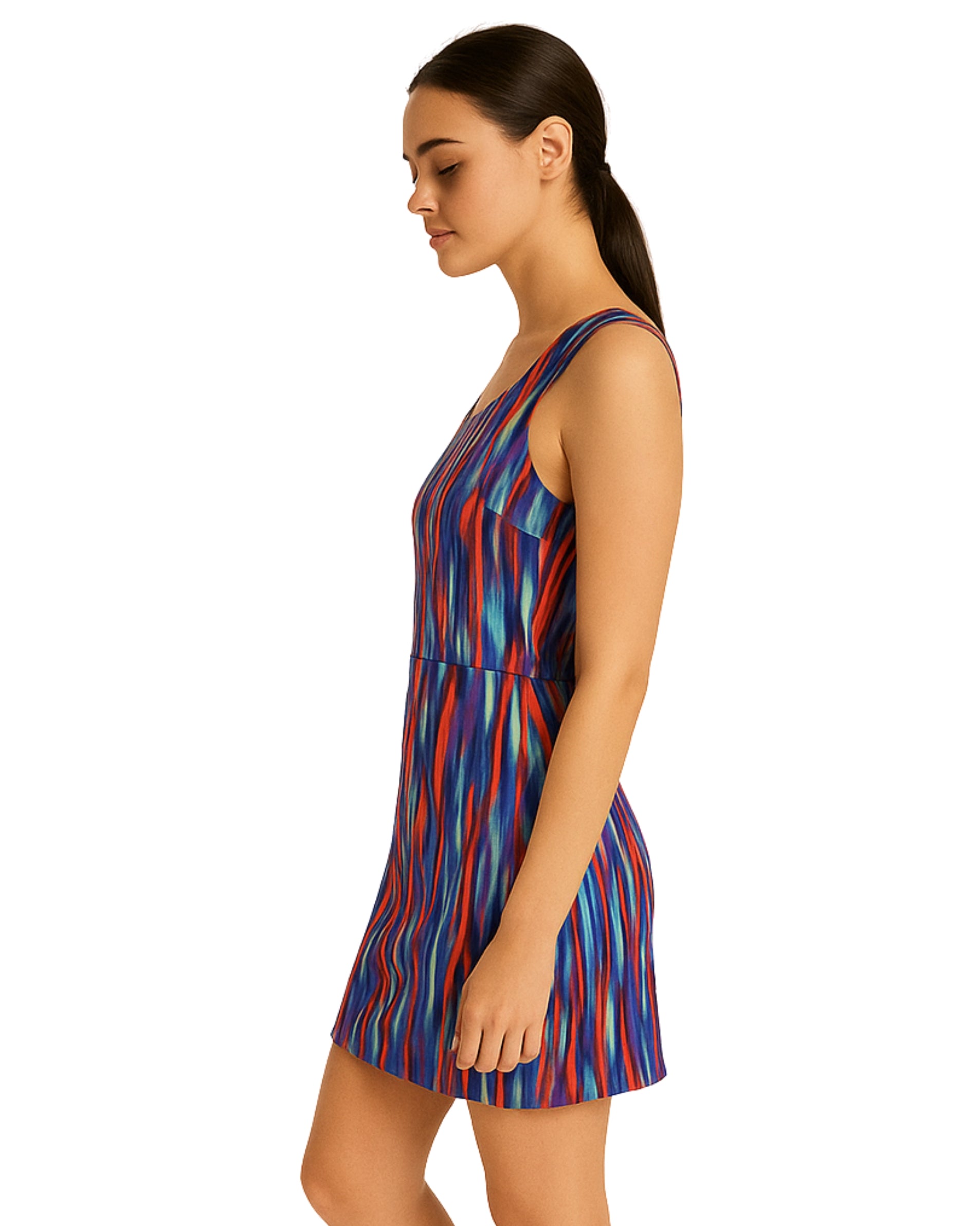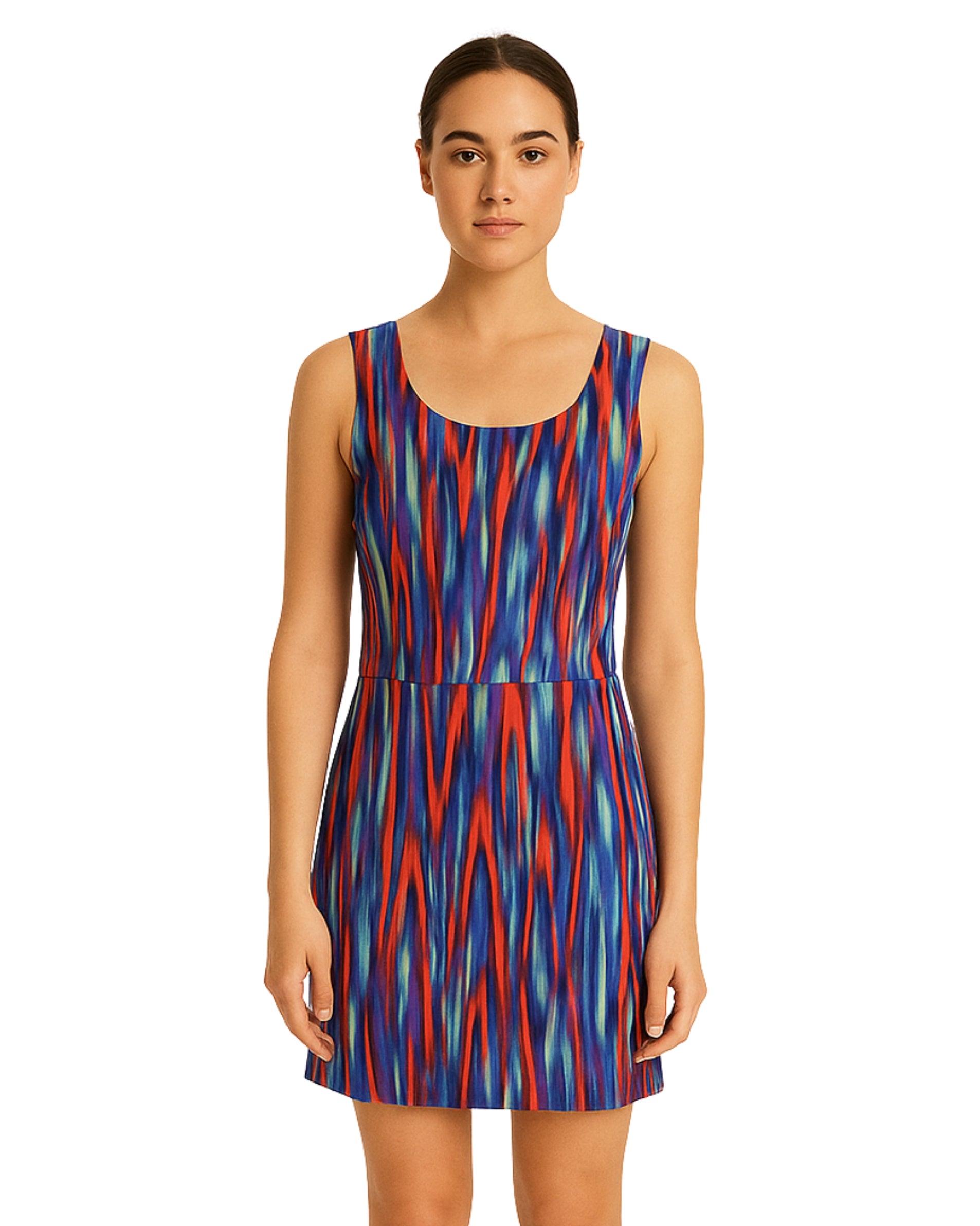 Women, Sleeveless, Casual, Allover Graphic Striped, Round Neck, Back Zip Closure