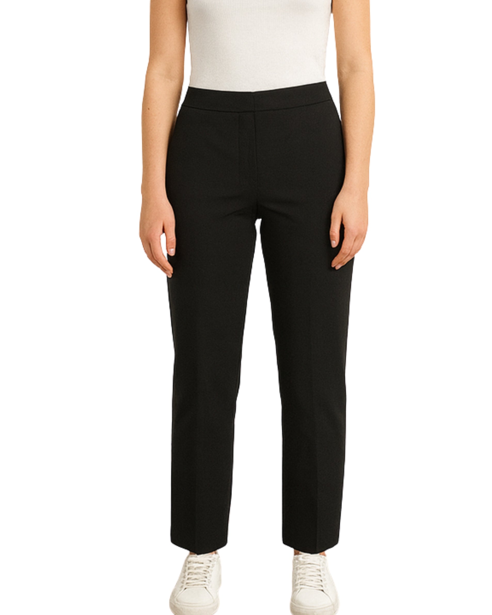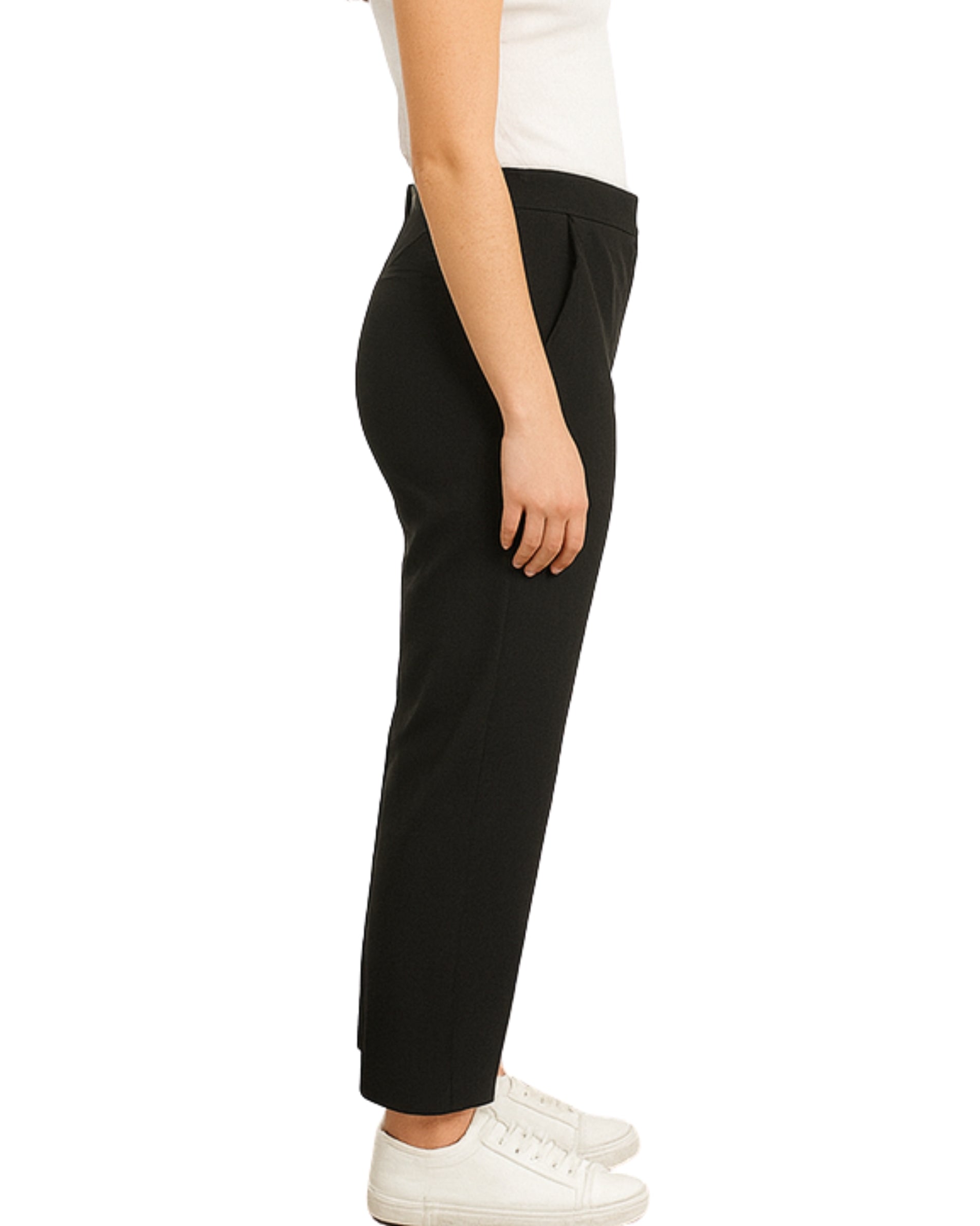 Elastic Waistband, Button Closure With Zipper Closure, One Faux Back Pockets, Belt Loops, 100% Polyester
