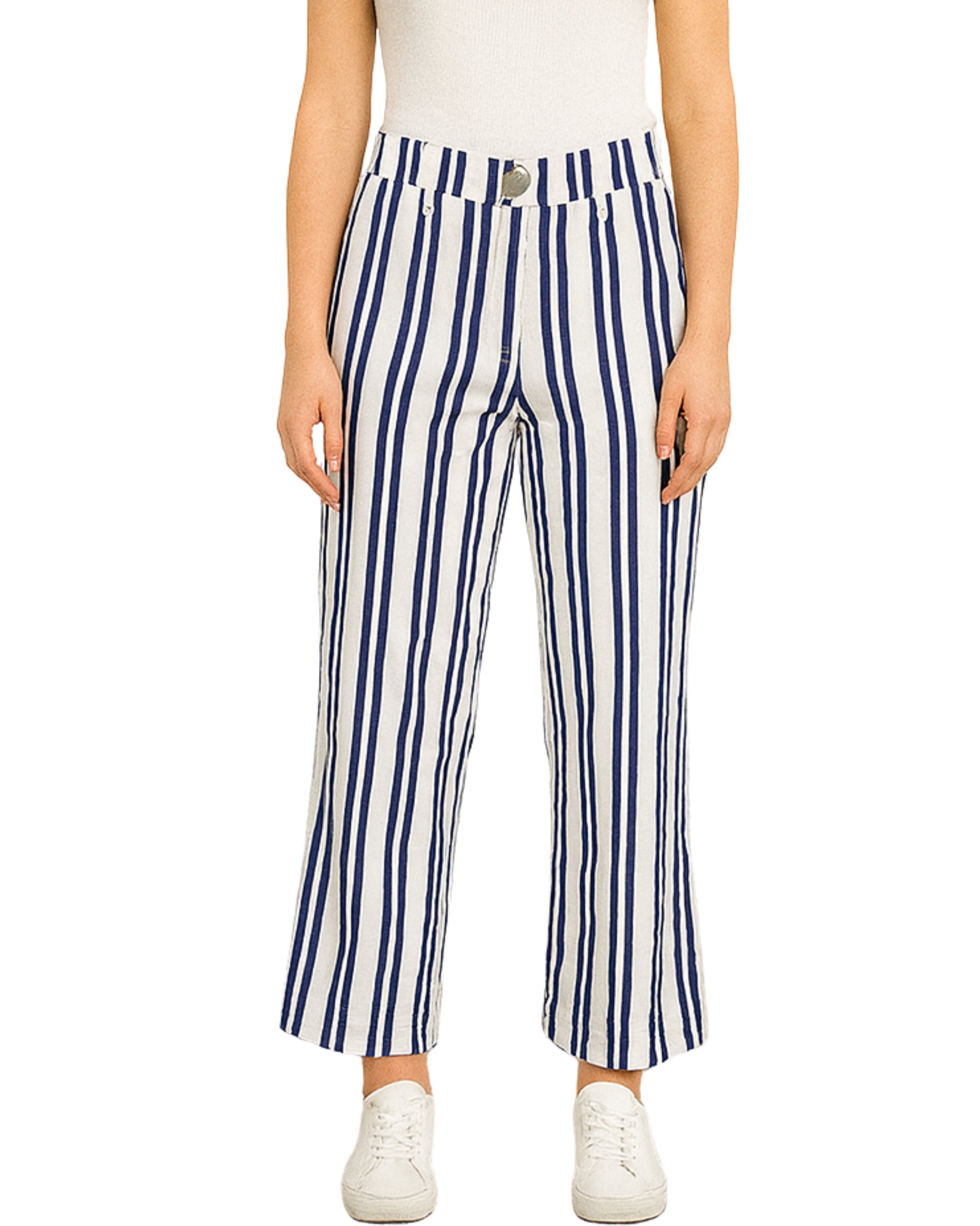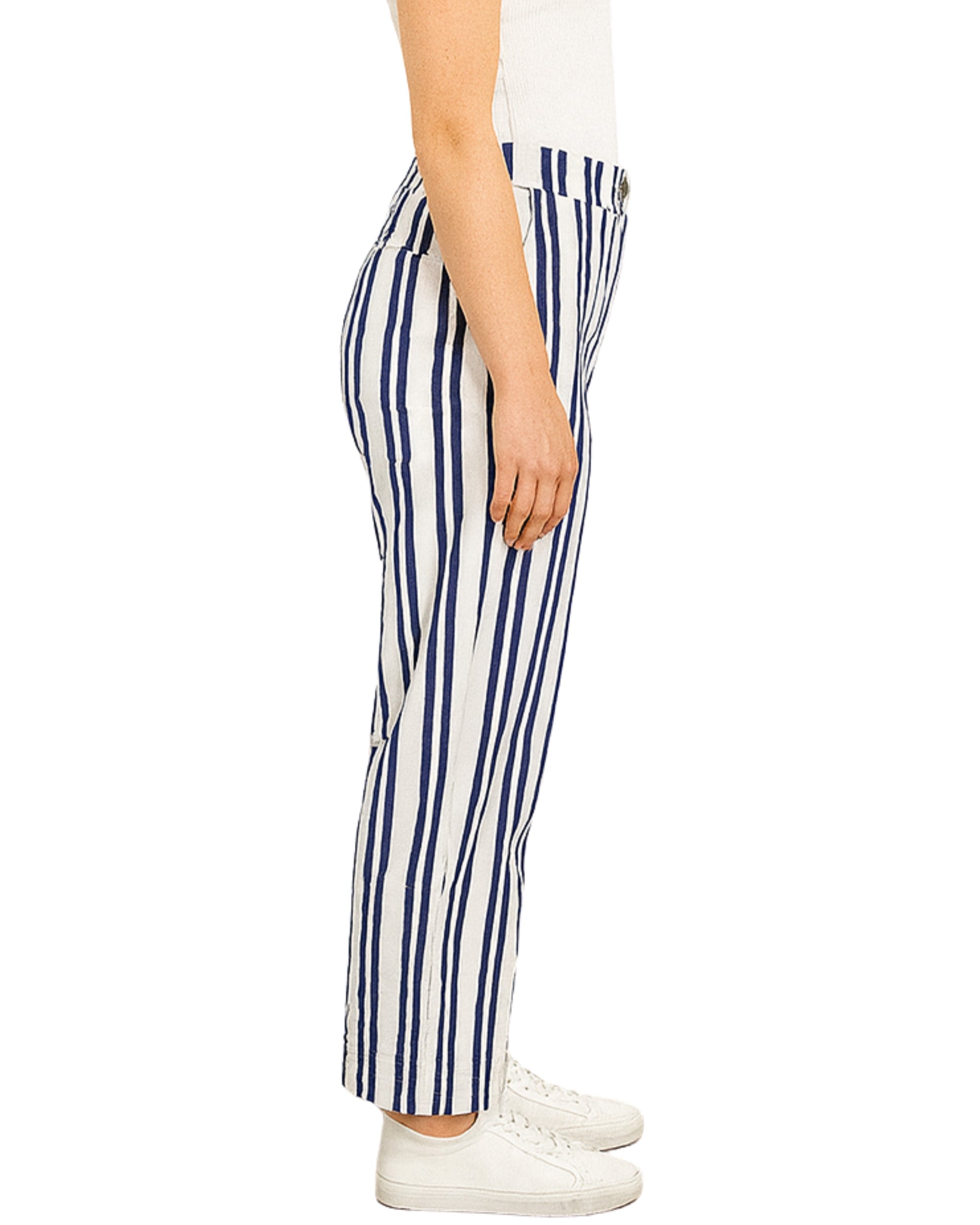 Belt Loops, Button Closure, Zipper Closure, Casual, 4 Pockets, Striped