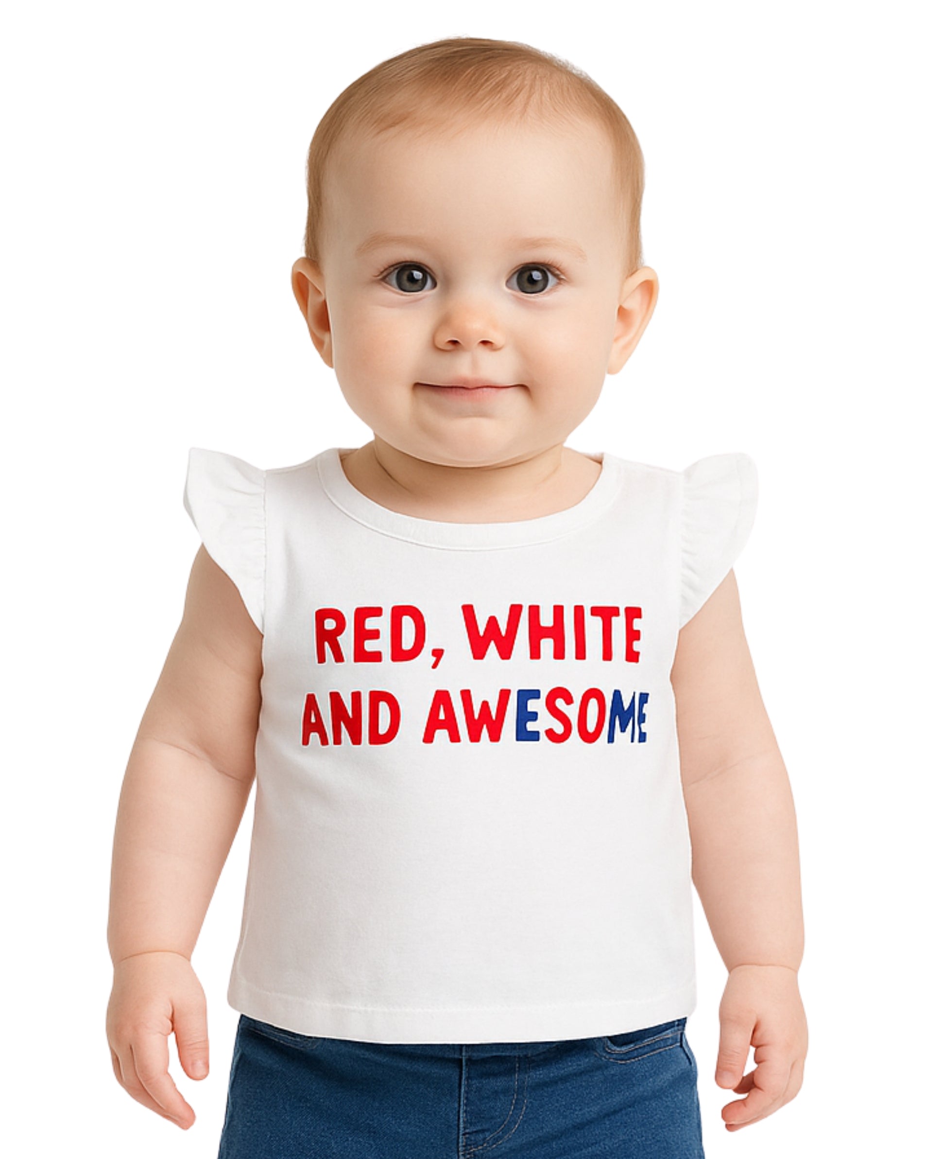 Crew Neck, Ruffle Sleeve, Printed, Casual