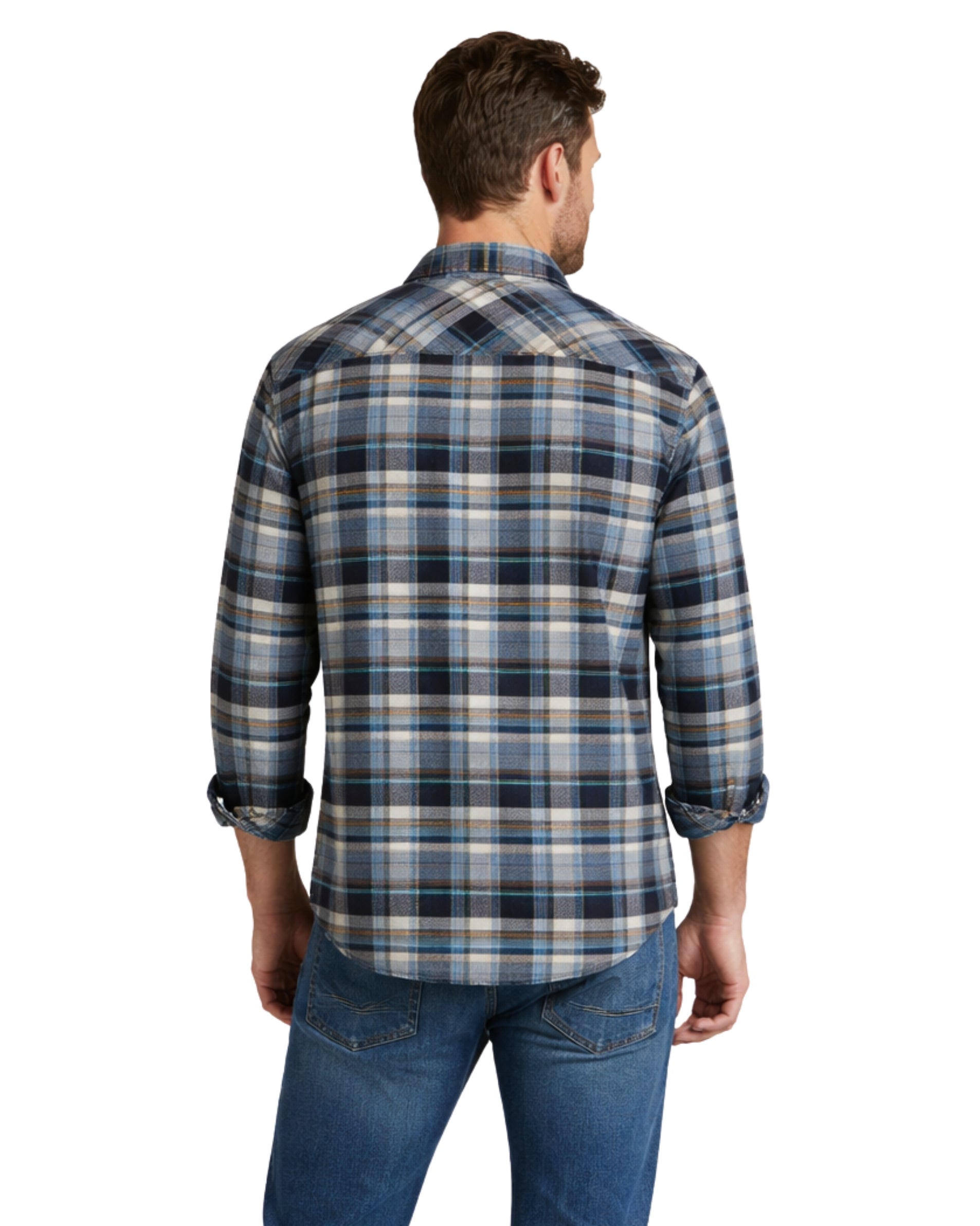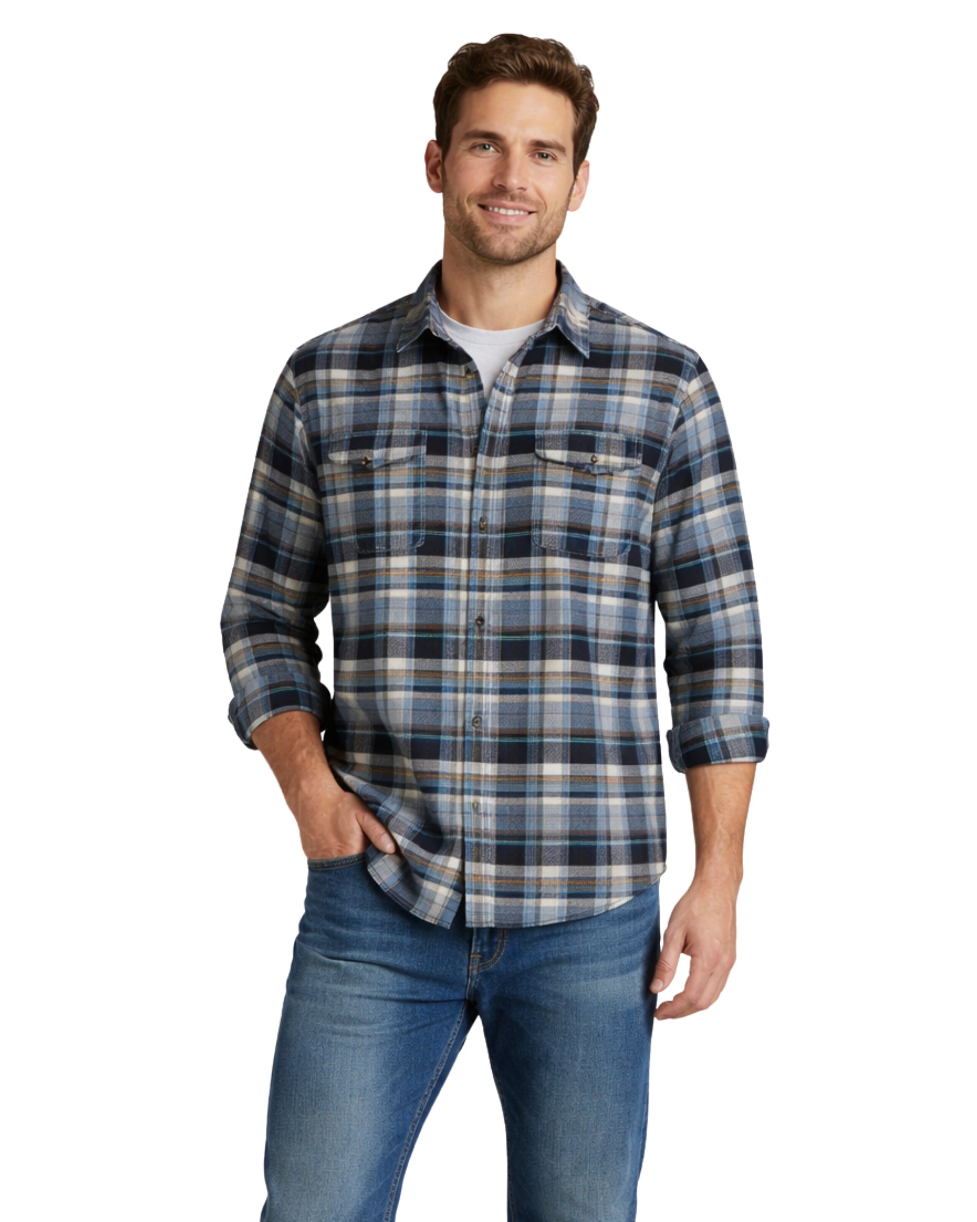 Men, Long Sleeve, Polo Neck, Button Closure, Chest Pocket, Stripe, Warmth, Regular Fit, Casual, 100% Cotton