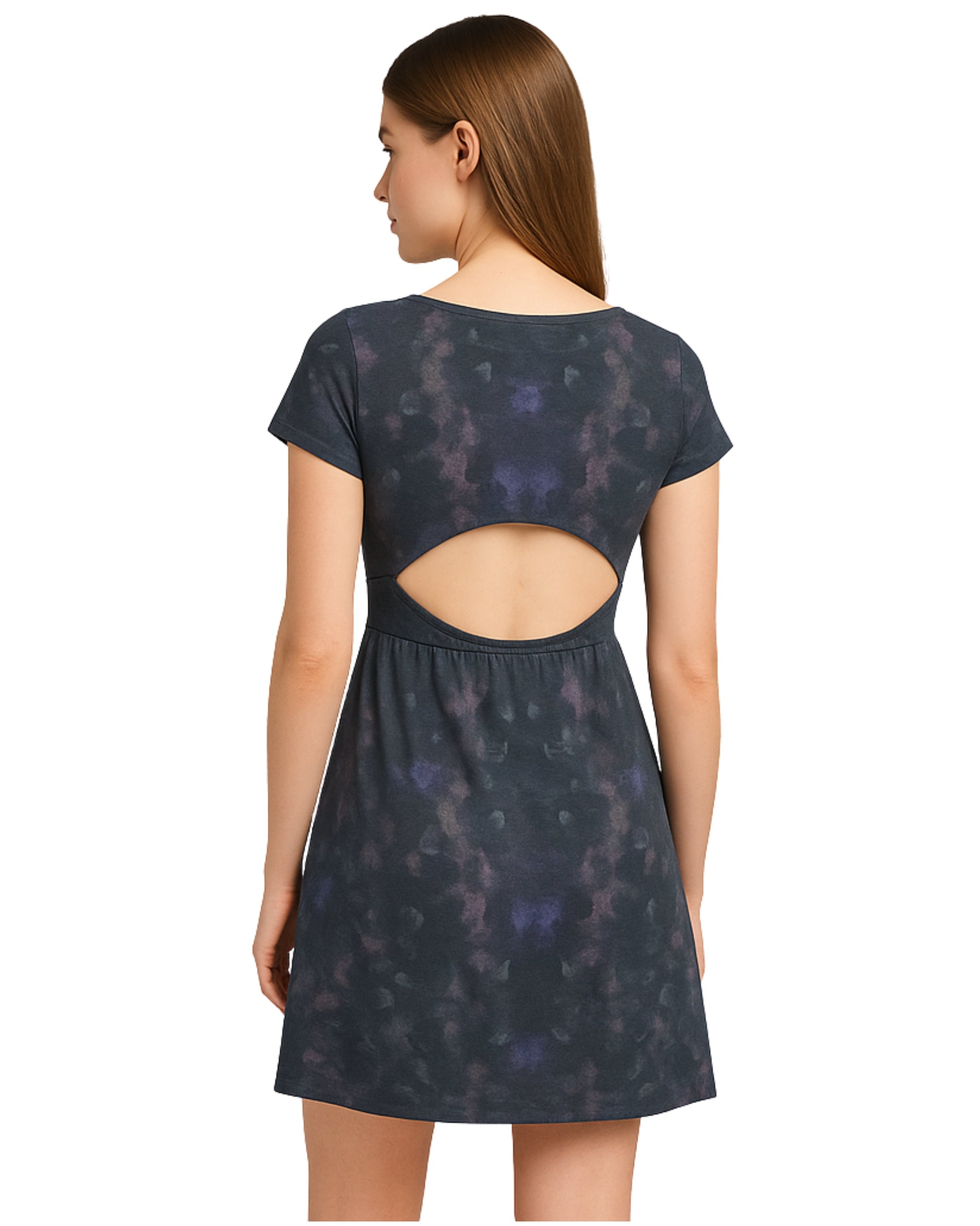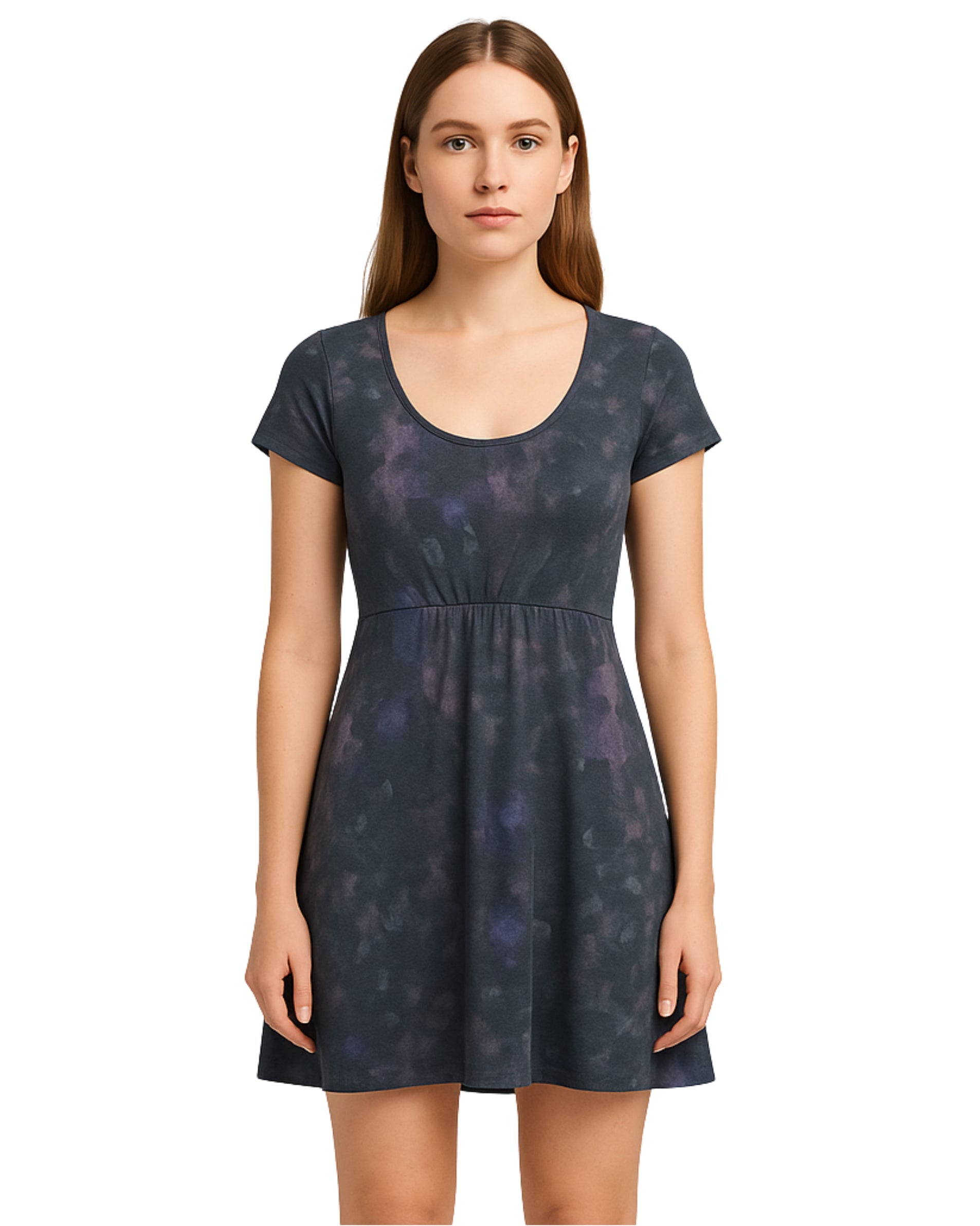 Short Sleeve, Round Neck, Tite Waist, Fit, Mini Dress, Casual, Printed