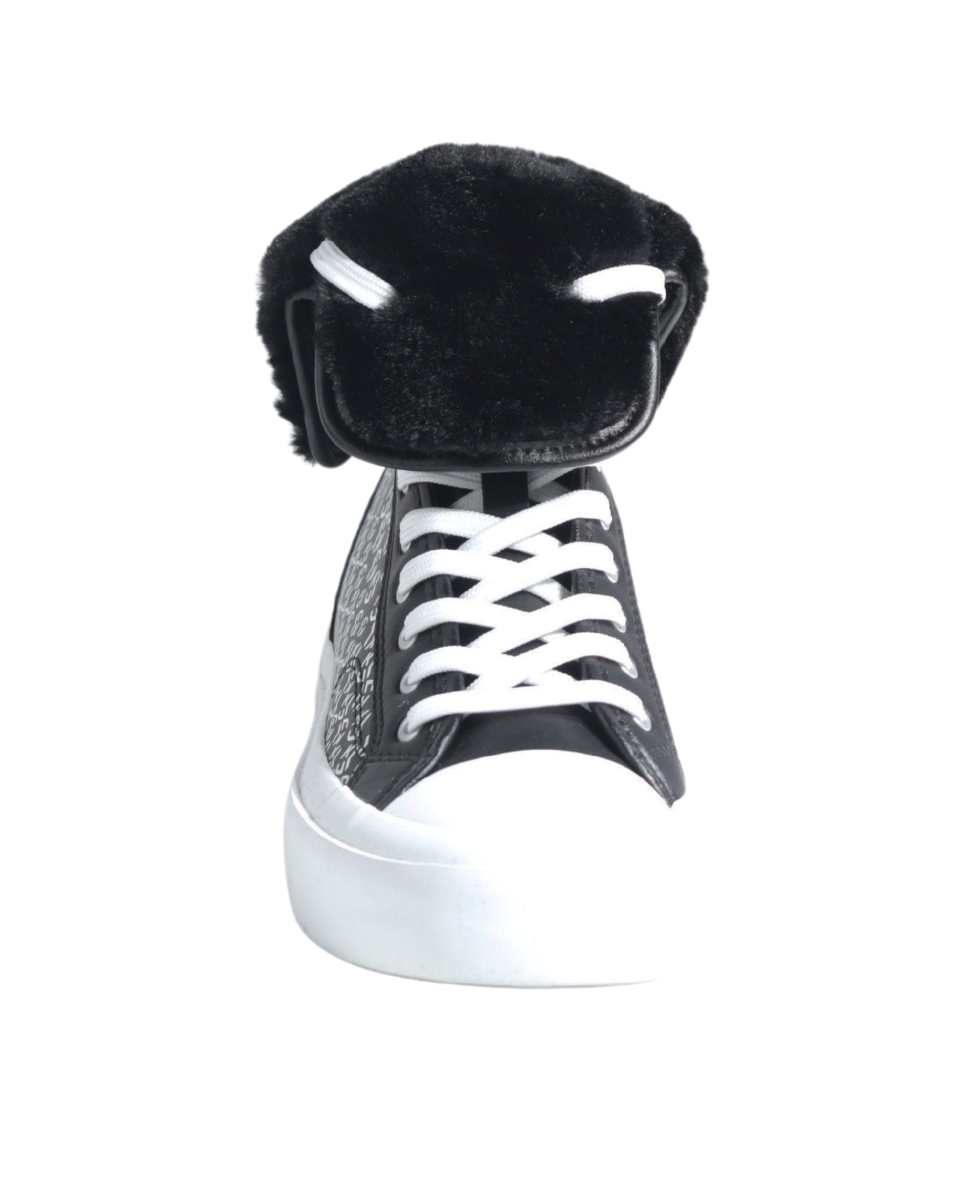 Women, Flat, Mid Top, Lace Up, Rubber, Synthetic, Fur, Logo, Stylish & Casual
