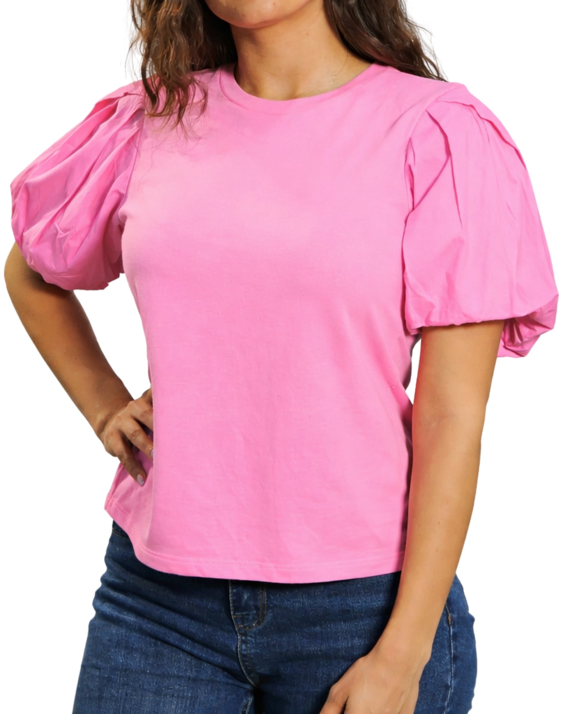 Short Sleeve, Crew Neck, Ruffle, 53% Cotton, 47% Polyester, 3% Spandex