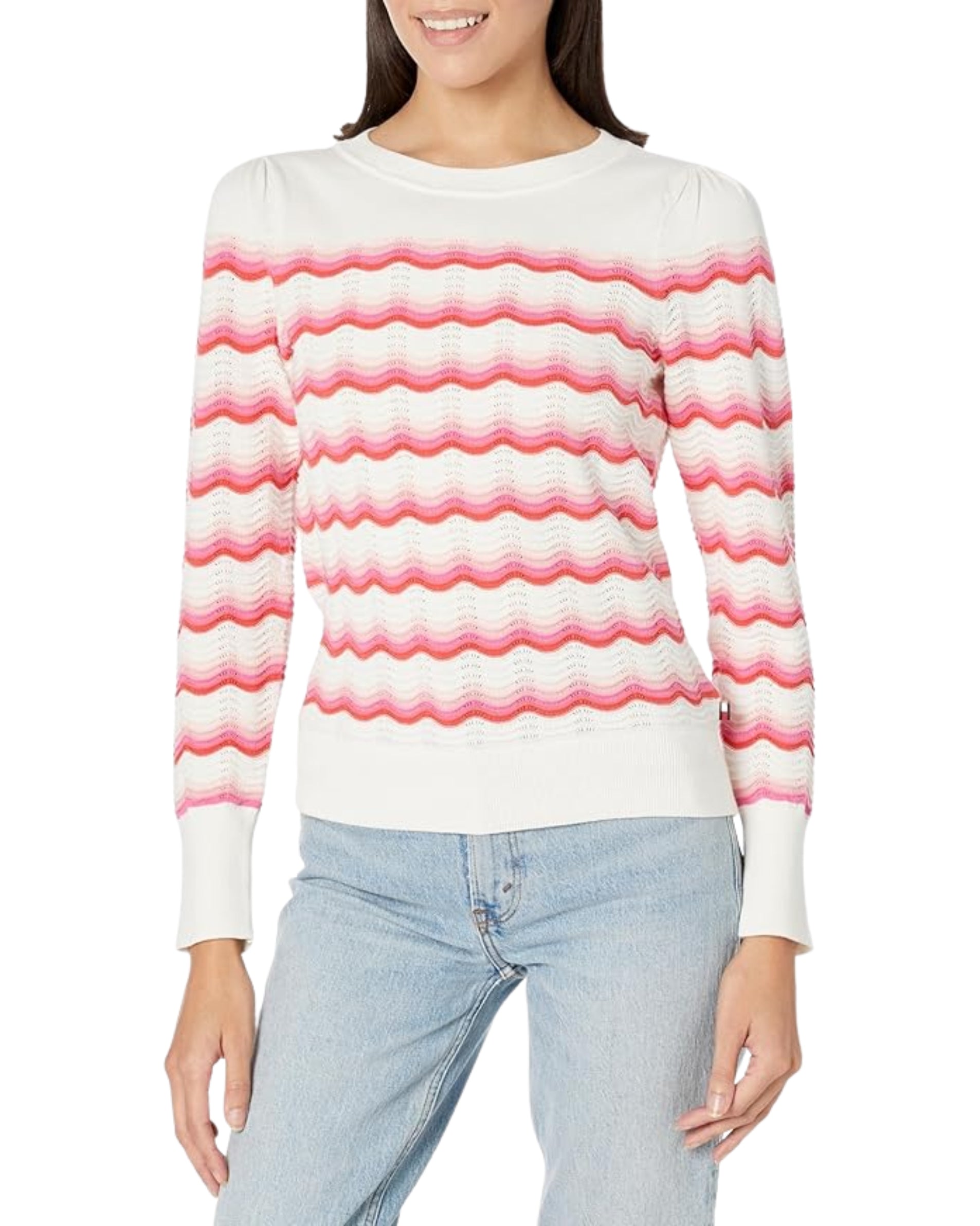 Women, Long Sleeve, Crew Neck, Pointelle Stripe, Soft, Casual
