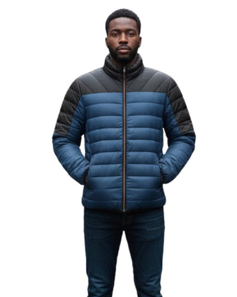 Men, Long Sleeve, Turtle Neck, Full Zipper Closure, 2 Zipper Pocket, Logo at Sleeve, Colorblock, Puff, Warm, Durable, 100% Polyester