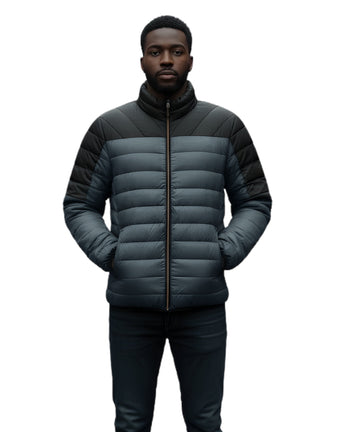 Men, Long Sleeve, Turtle Neck, Full Zipper Closure, 2 Zipper Pocket, Logo at Sleeve, Colorblock, Puff, Warm, Durable, 100% Polyester