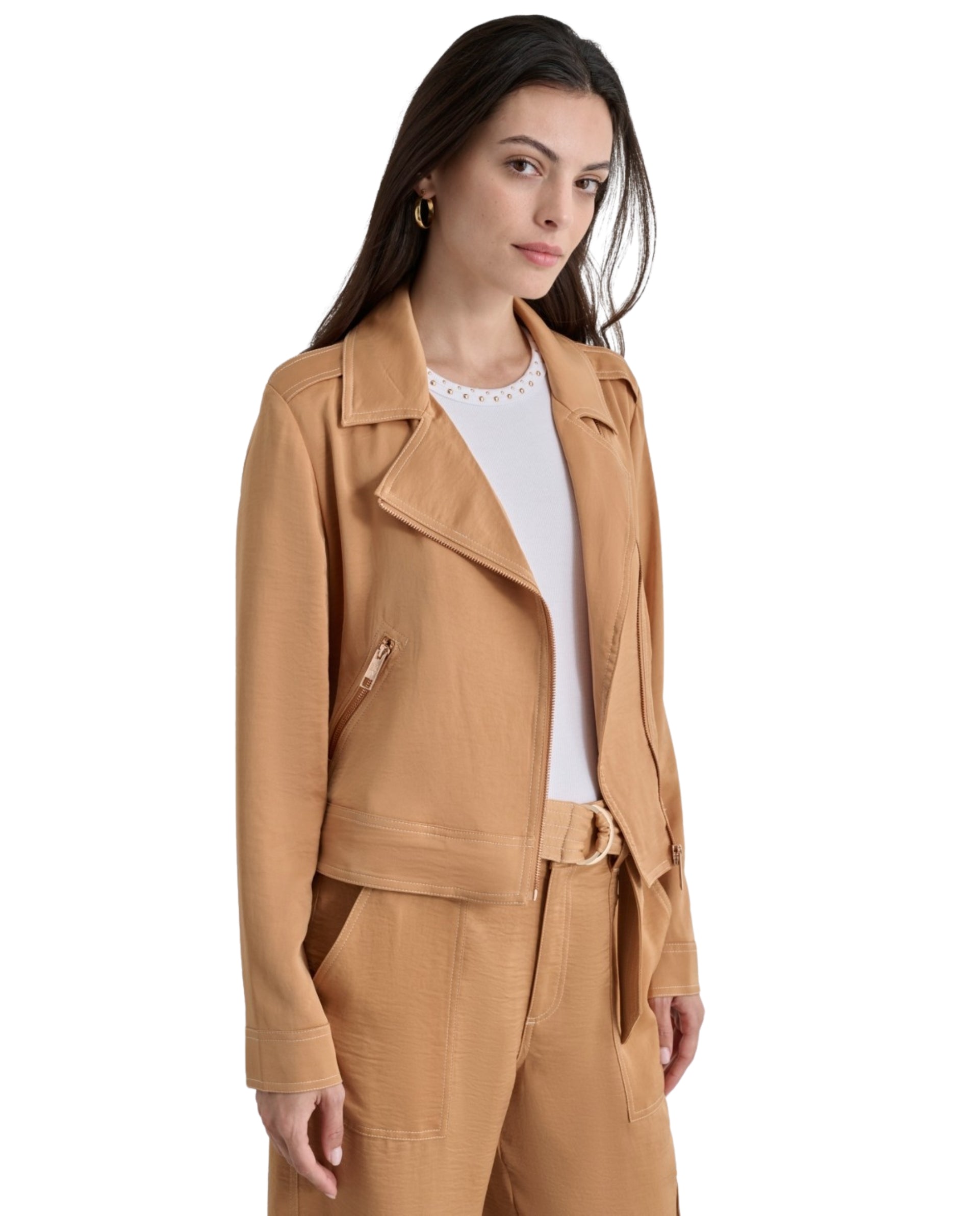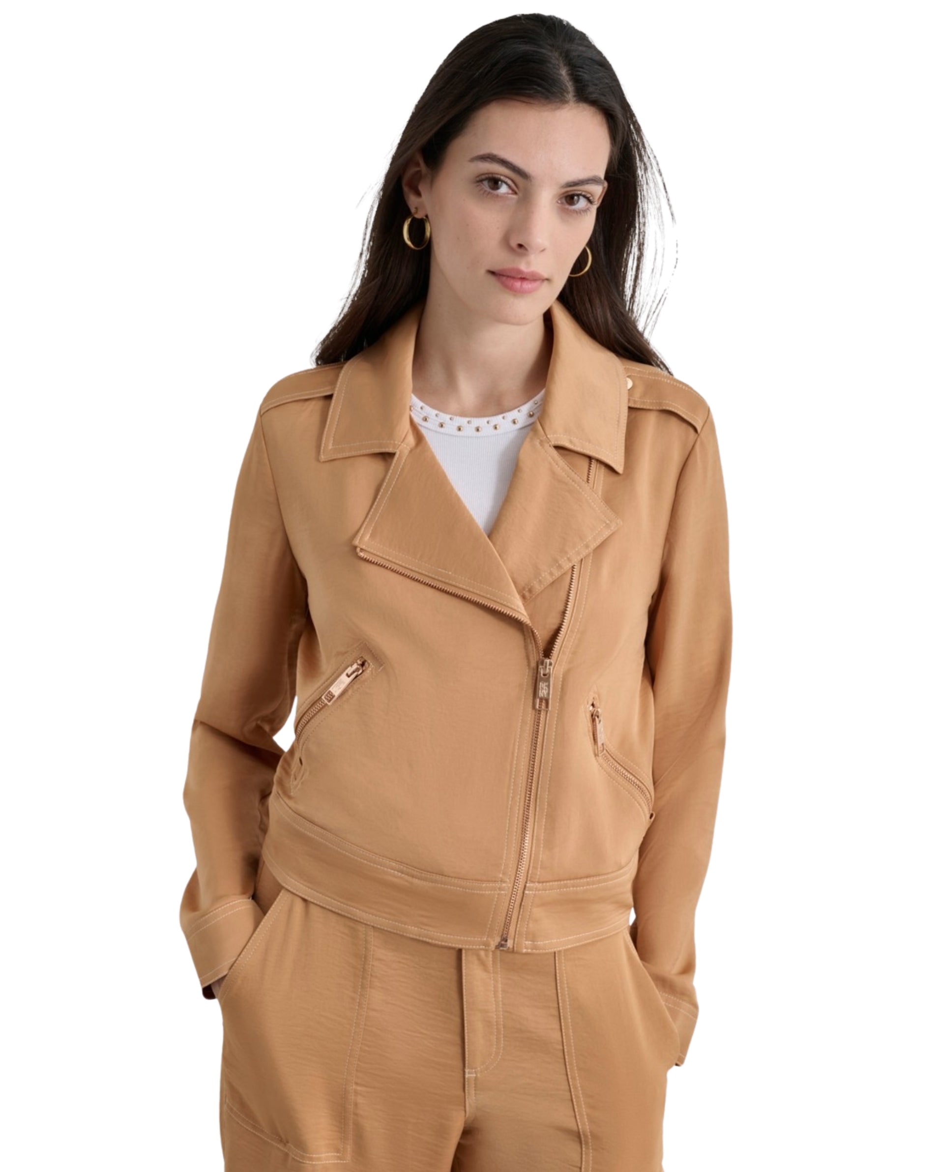 DKNY Women Contrast Stitch Asymmetric Moto Jacket�