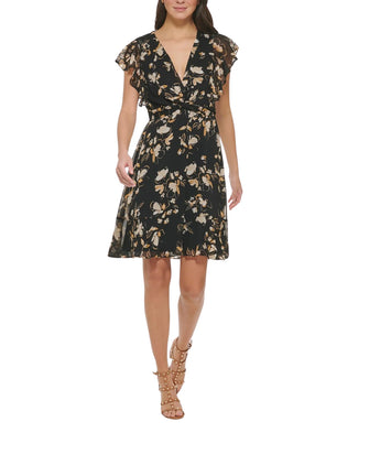 Women, Short Sleeve, V Neck, back Zipper Closure, Floral, Fit & Flare, 100% Polyester