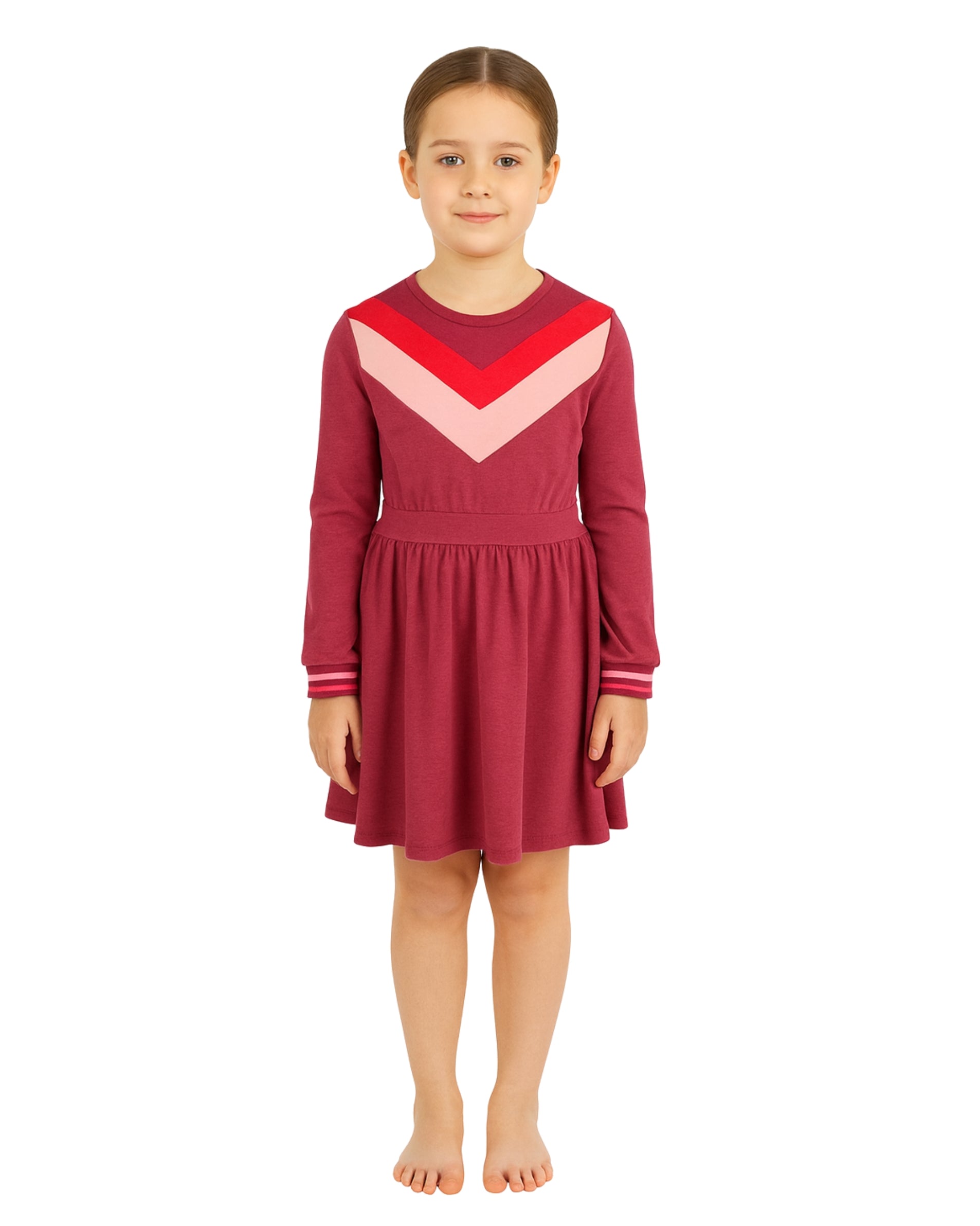 Girls, Long Sleeve, Round Neck, Fleece War, Front Colorblock, Ruffle, 60% Cotton, 40% Polyester