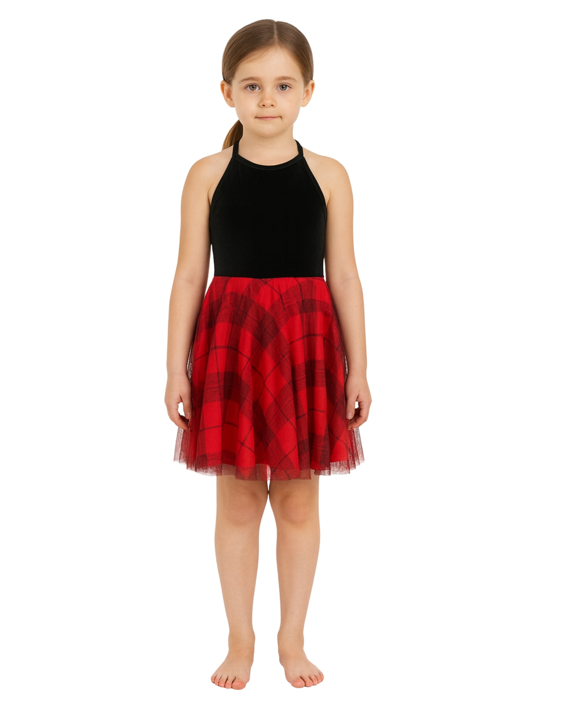 Girls, Sleeveless, Round Neck, Ruffle, Stripe, Smooth, Chic Dress, 92% Polyetser, 8% Spandex
