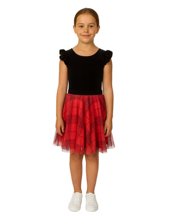 Girls, Sleeveless, Crew Neck, Ruffle, Stripe, Velvet, Smooth, Chick & Stylish Dress, 92% Polyetser, 8% Spandex