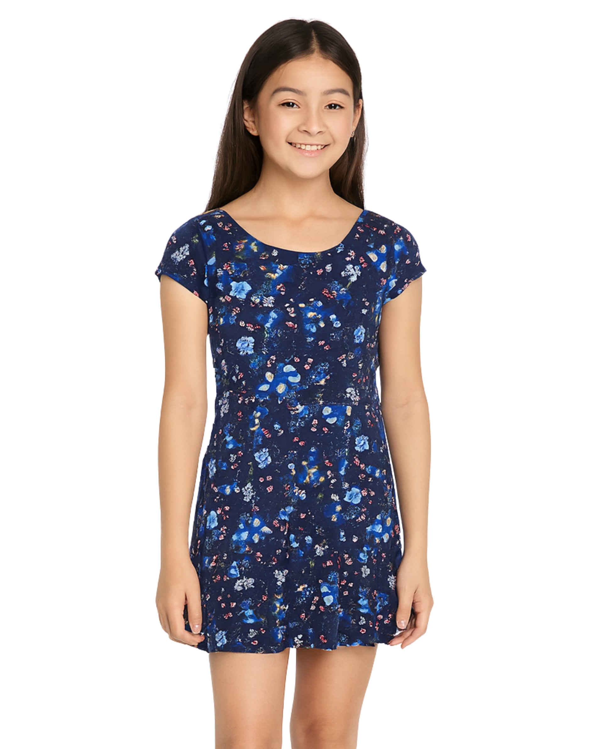 Short Sleeve, Floral, Crew Neck, Back Cress Cross, 95% Polyester, 5% Spandex