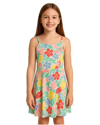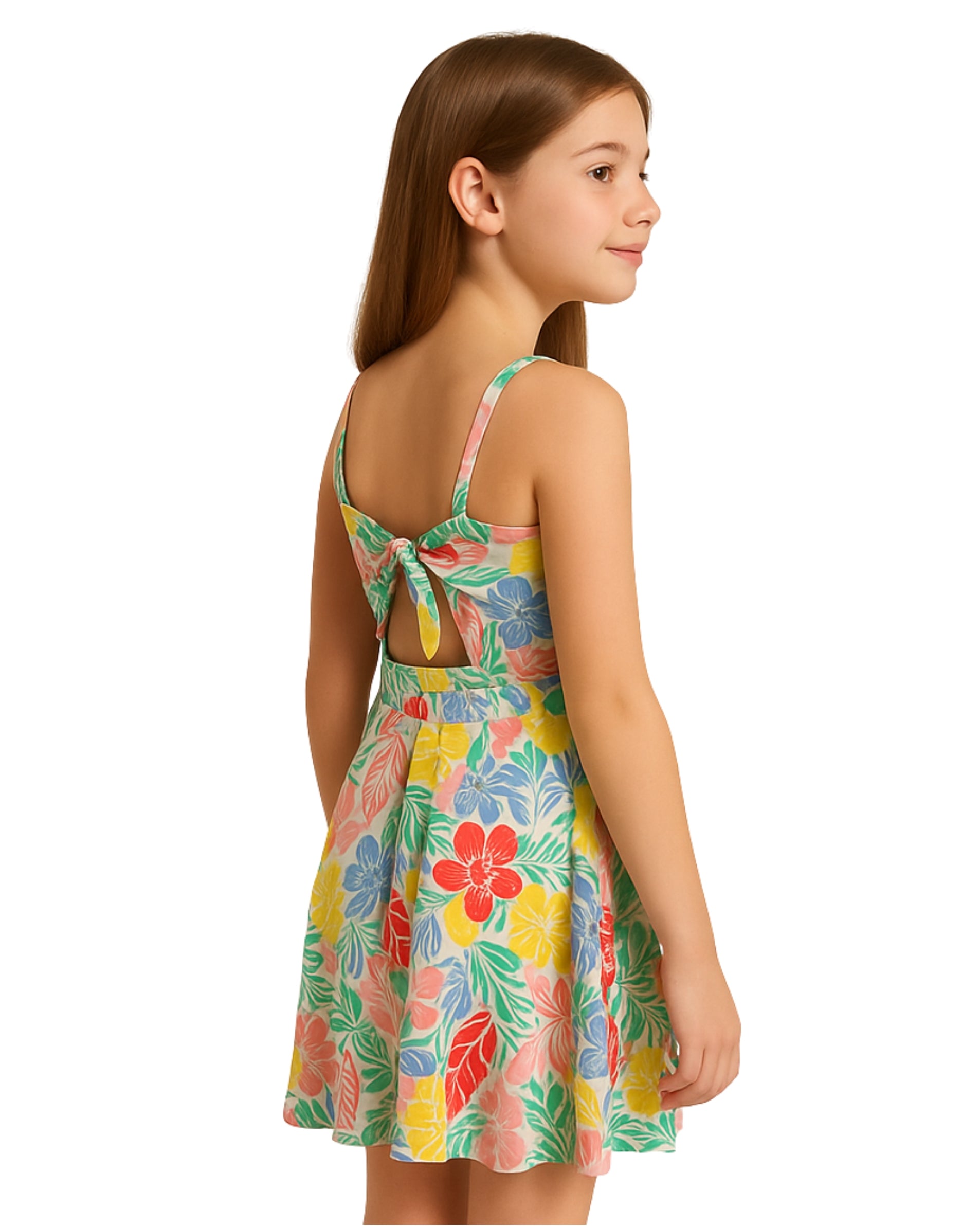 Sleeveless, Square Neck, Back Rubber, Floral, Fit & Flare