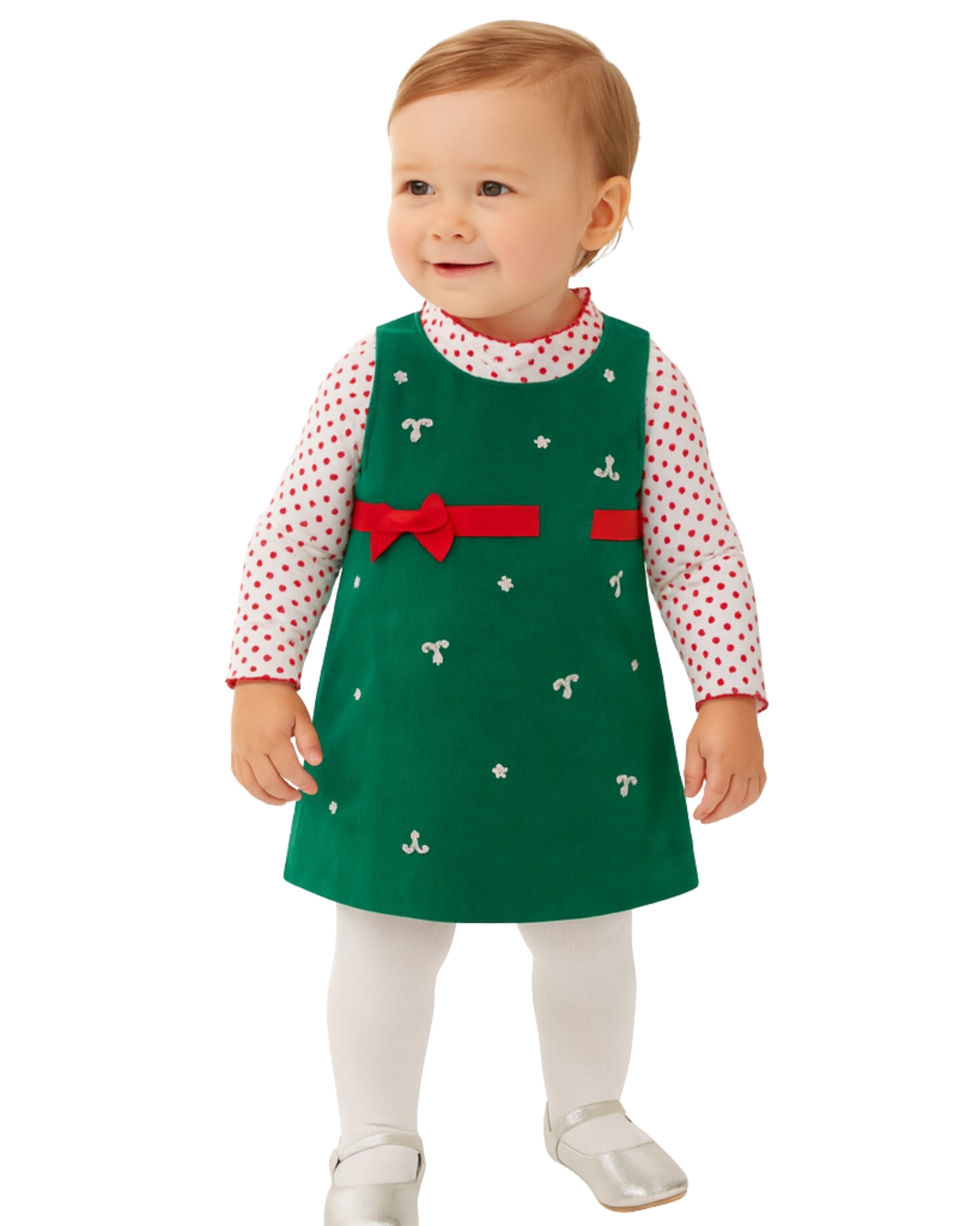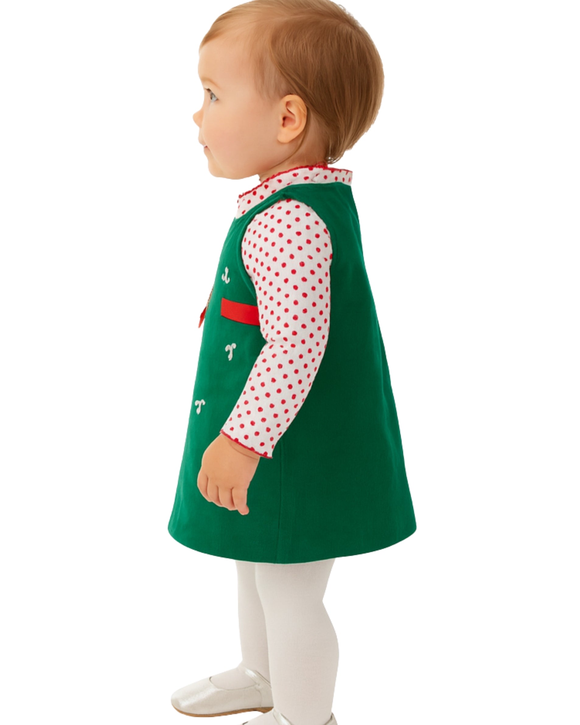 Girls, 2Pcs Set, Round Neck, Open Back, Dot-Print Bodysuit & Candy-Cane
