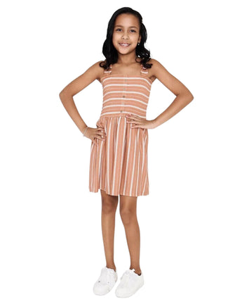 Kids, Girls, Stripe, Sleeveless, Stretch, Button Design, Ruffle, Comfort, Easy To Wear, 62% Polyester, 33% Rayon, 5% Spandex
